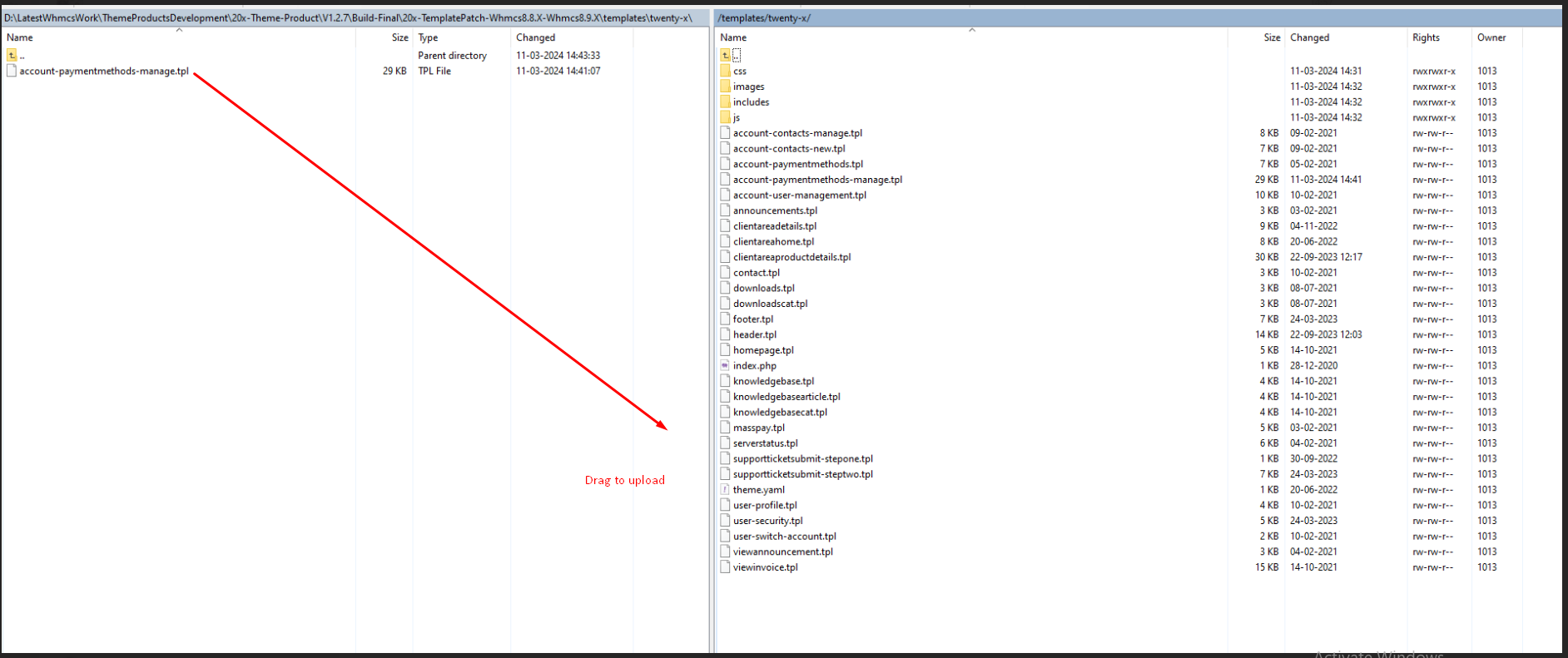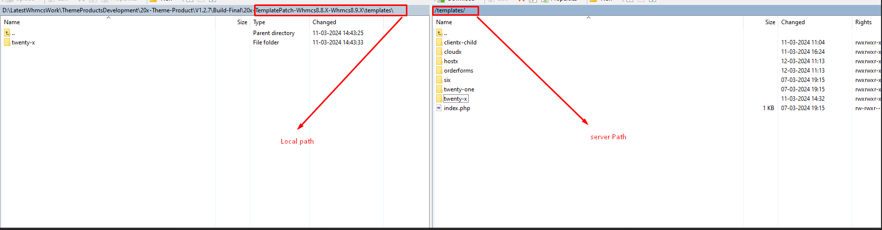 Step 2: After extracting the built got to the path as shown in the screenshot (\whmcs\templates\ -> In local ) and (/templates/ -> In server )