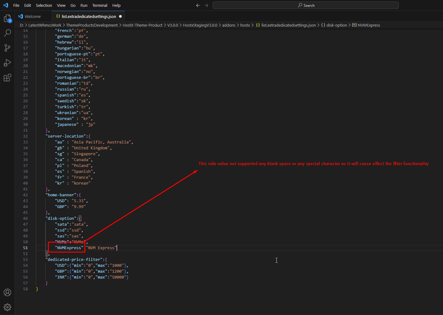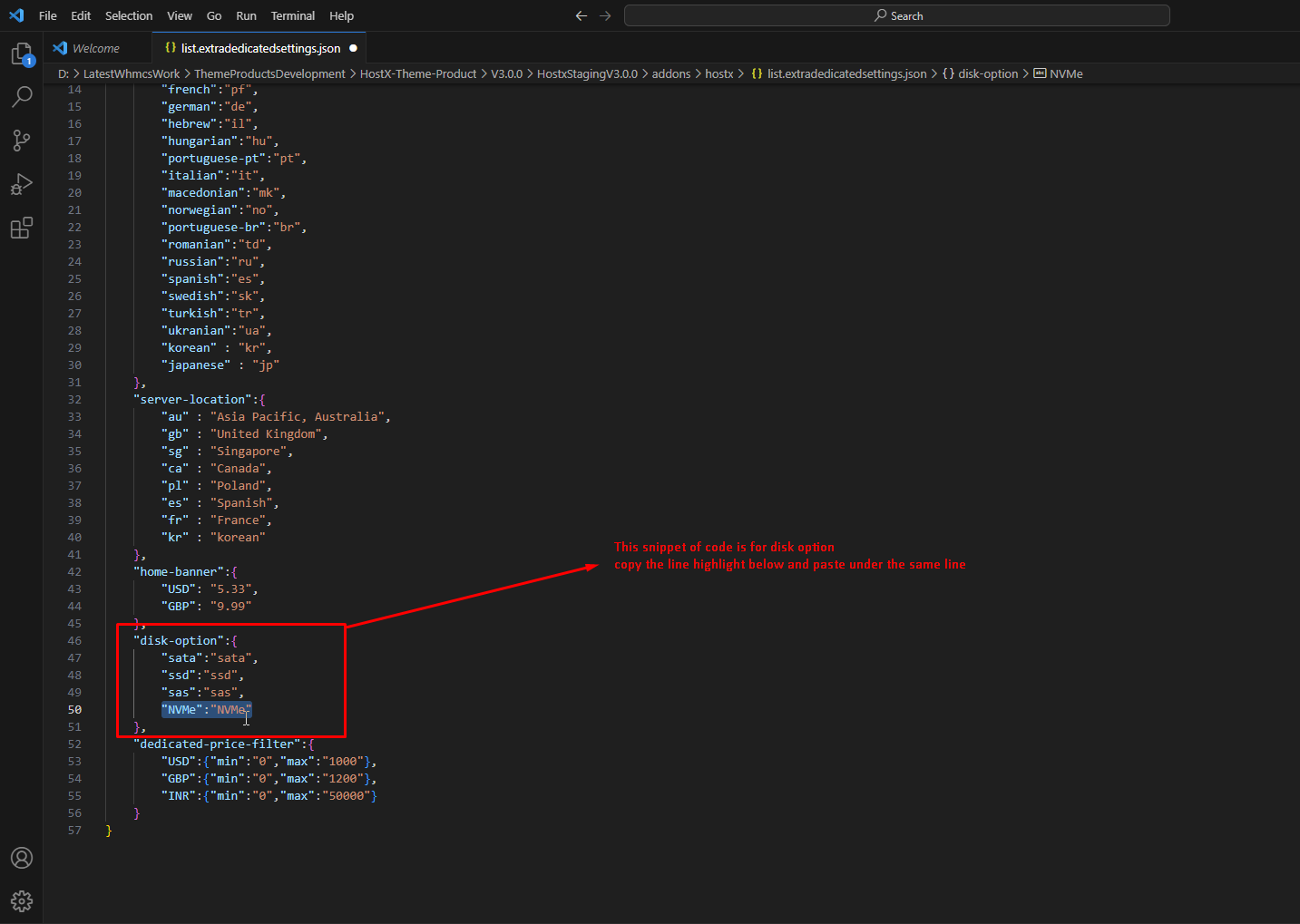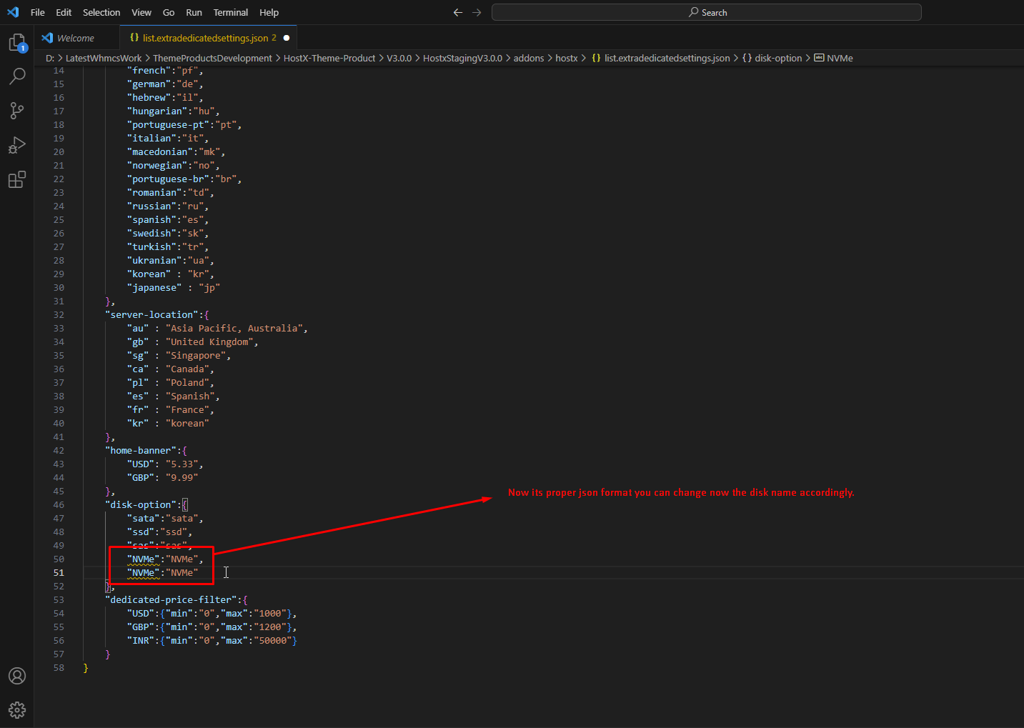 Step 7:- edit list.extradedicatedsettings.json following file.