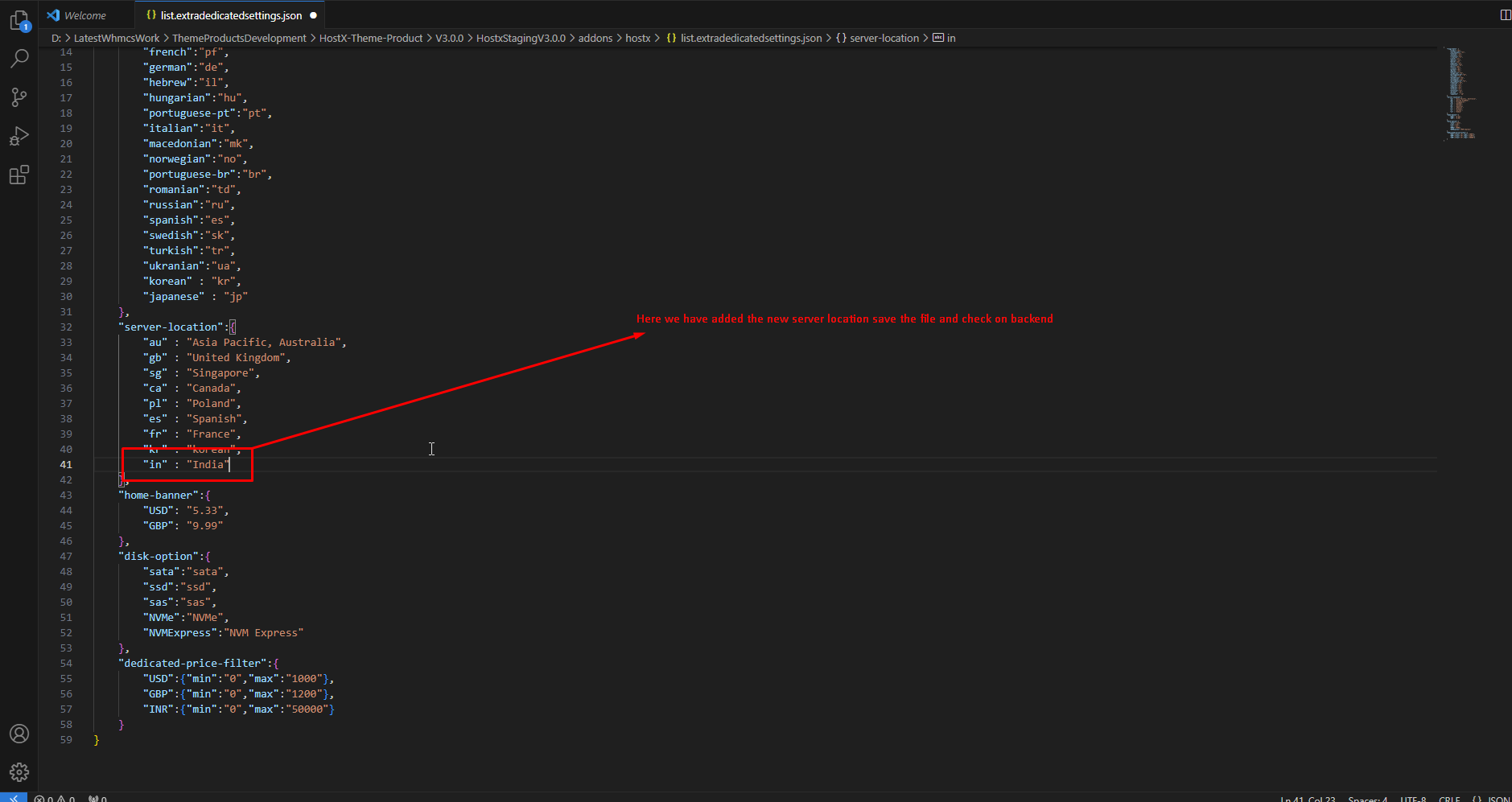 Step 7:- edit list.extradedicatedsettings.json following file.