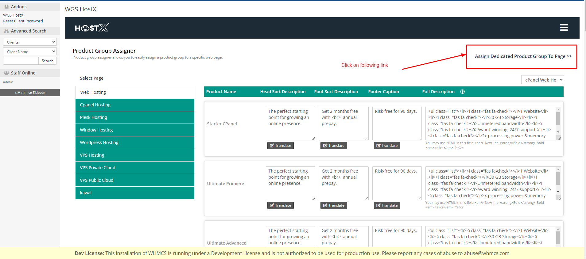 Step3:- Click on the assign dedicated product group page to as given below:-