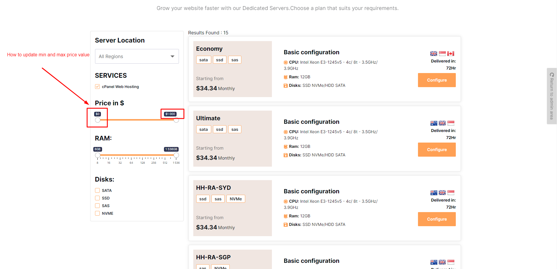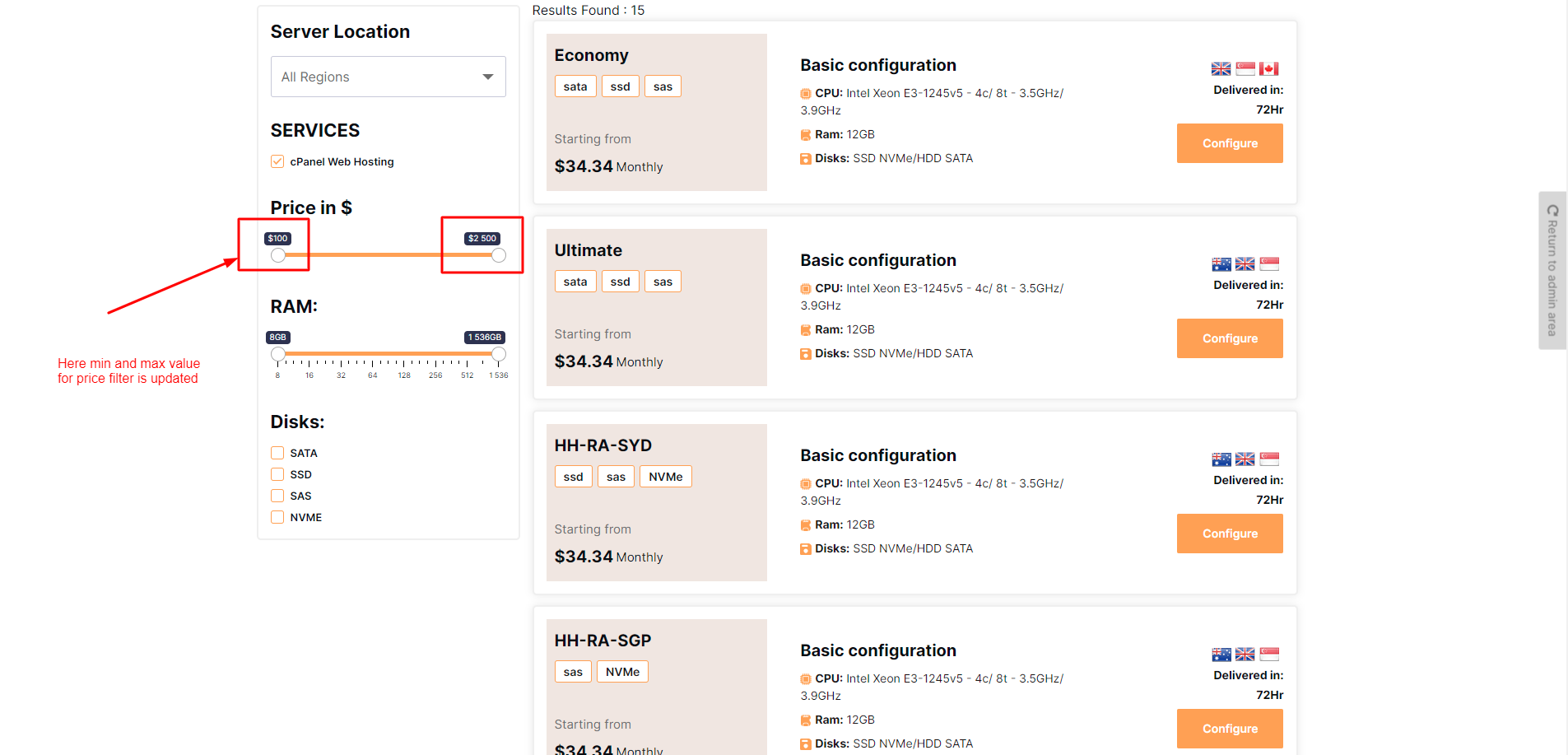 step 1.To update the server price filter please see in the given screenshot
