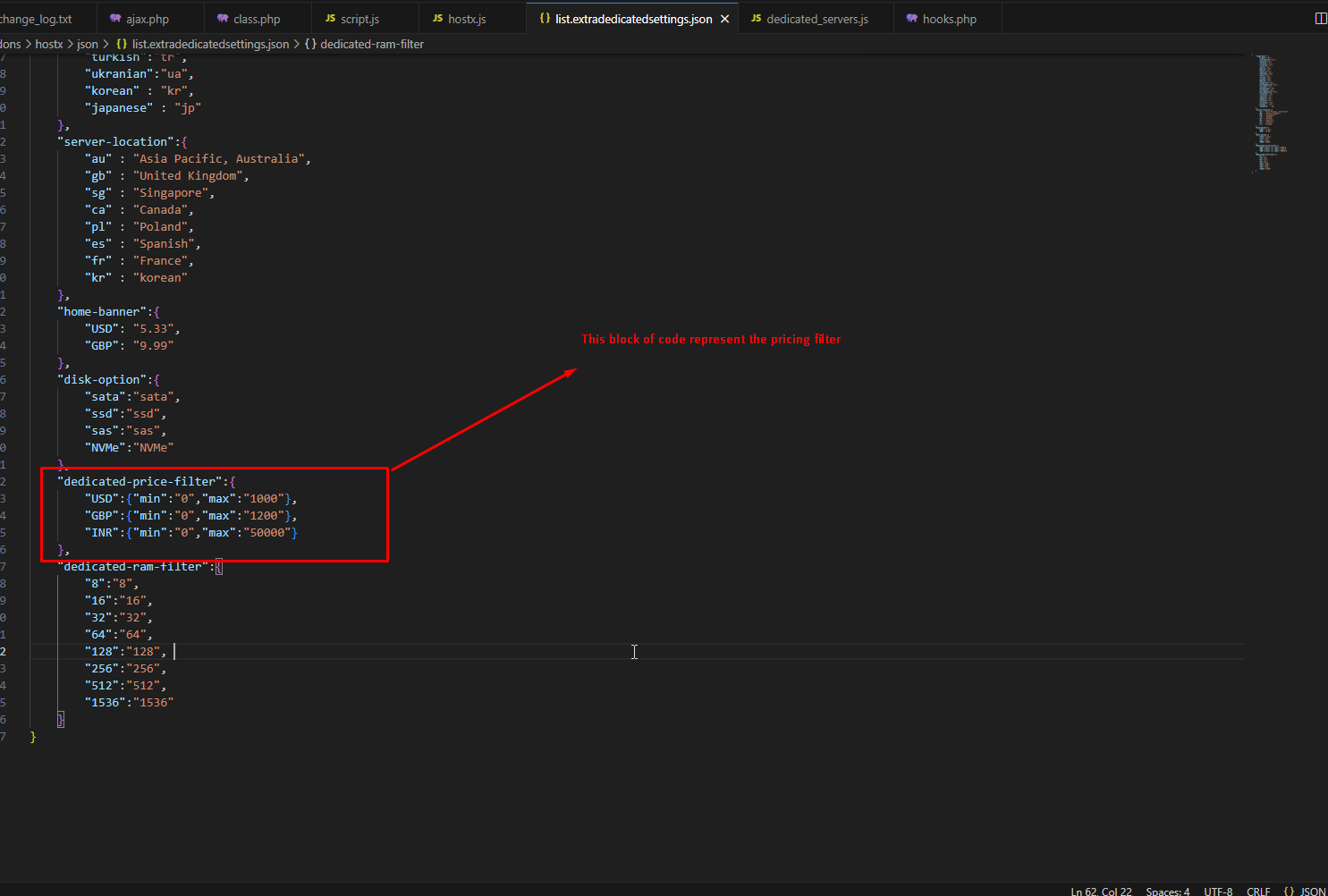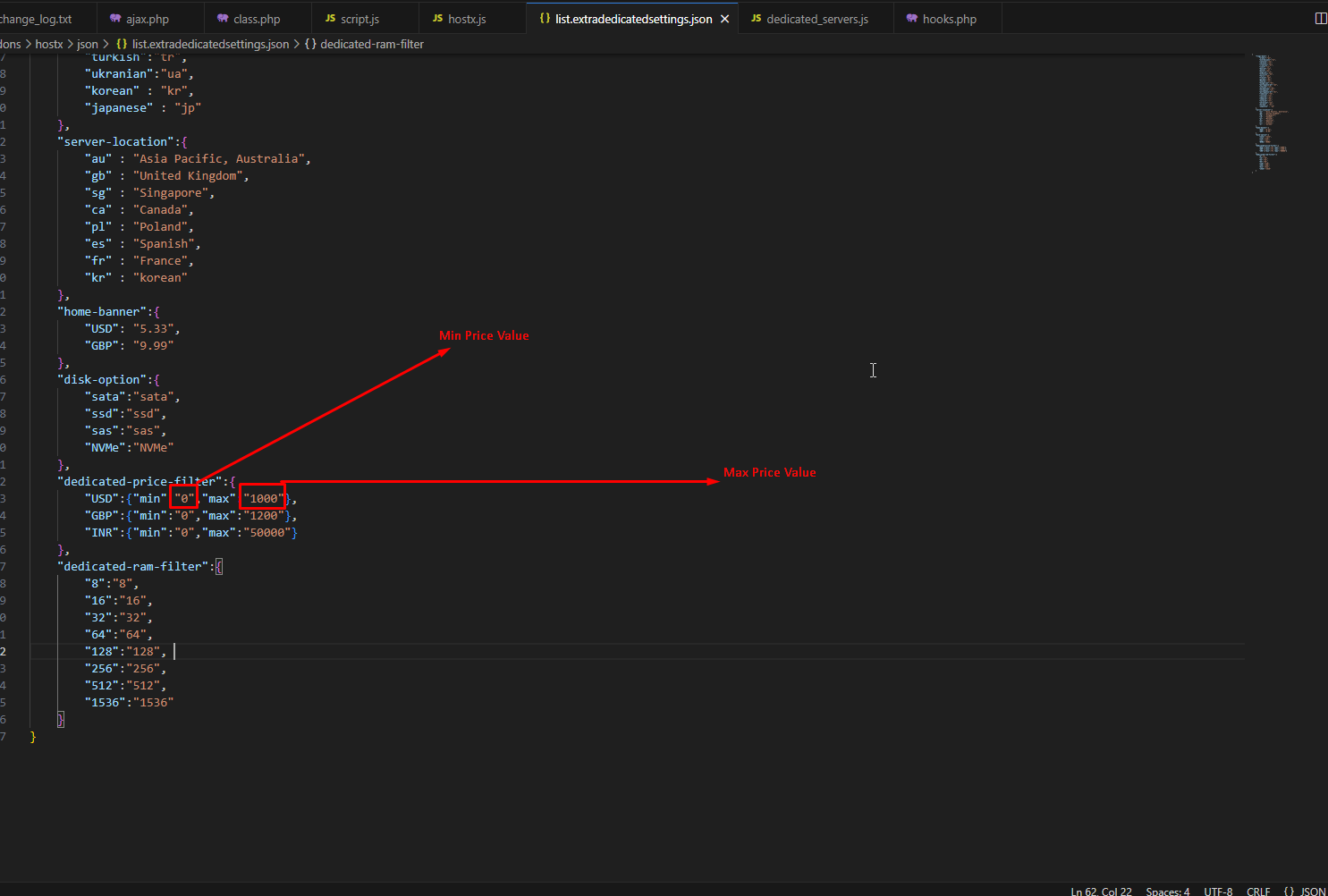 Step 7:- edit list.extradedicatedsettings.json following file.