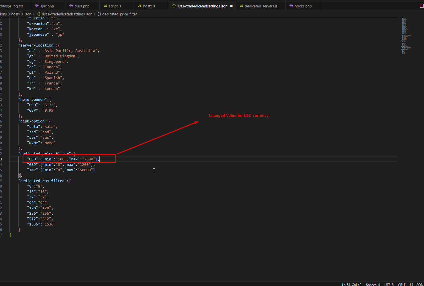 step 10:- Here you can change the value of currency USD.