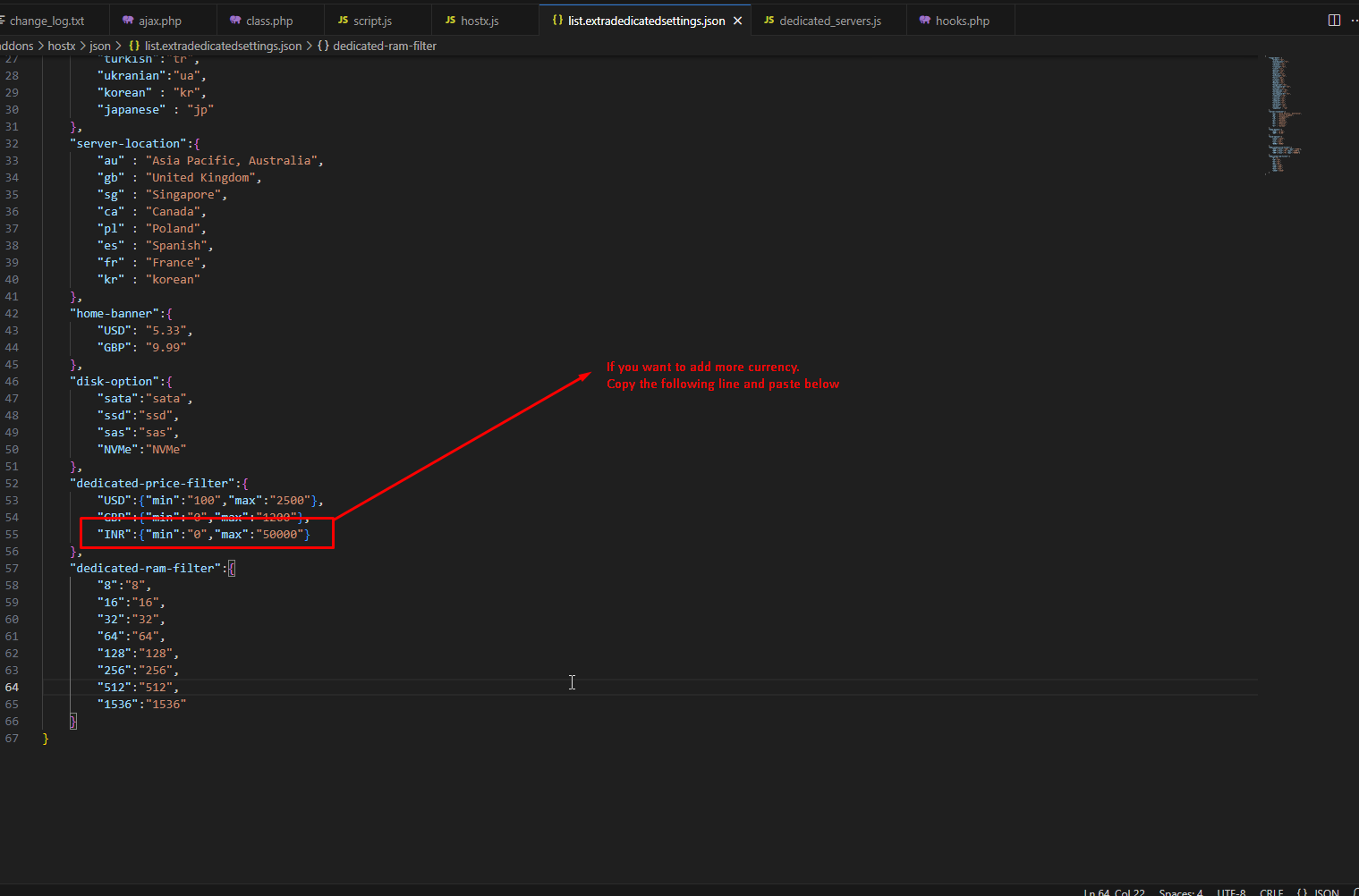 Step 13:-If you want to add more currency copy the following line and paste below.