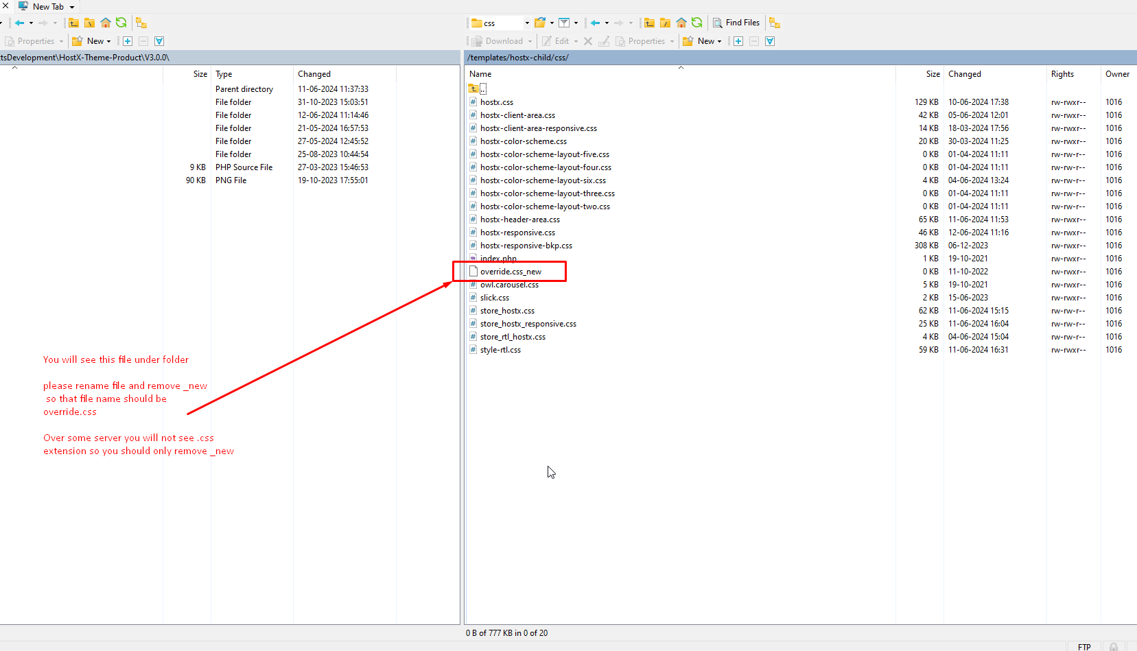 Note:-- Please rename file and remove_new so that file name should override.css