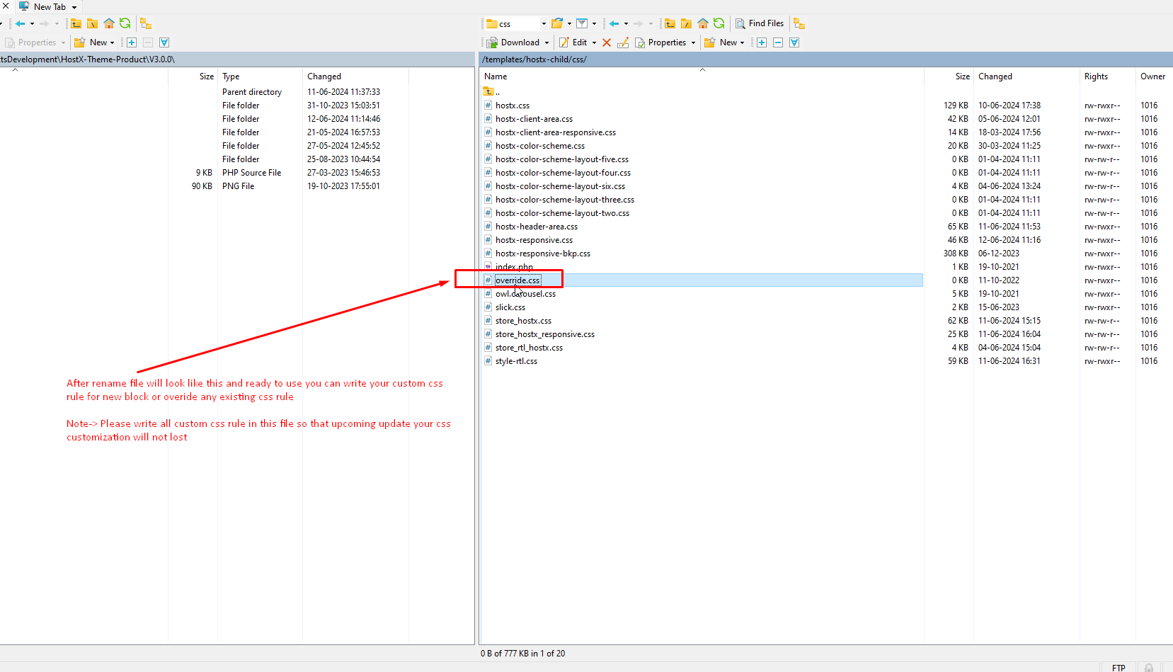 step:- 6 After rename file it will look like this and ready to use you can write your custom css rule for new block or override any existing css rule.