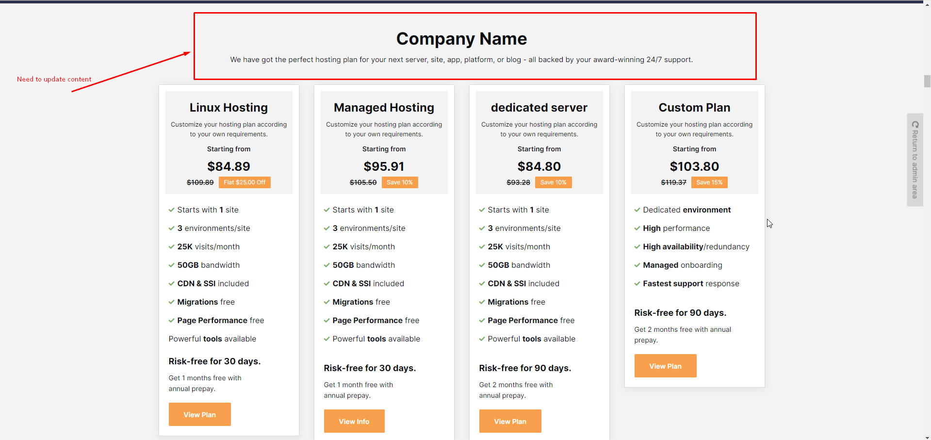 step 4:- Go to the homepage 1 pricing header and click on the pencil icon to edit.