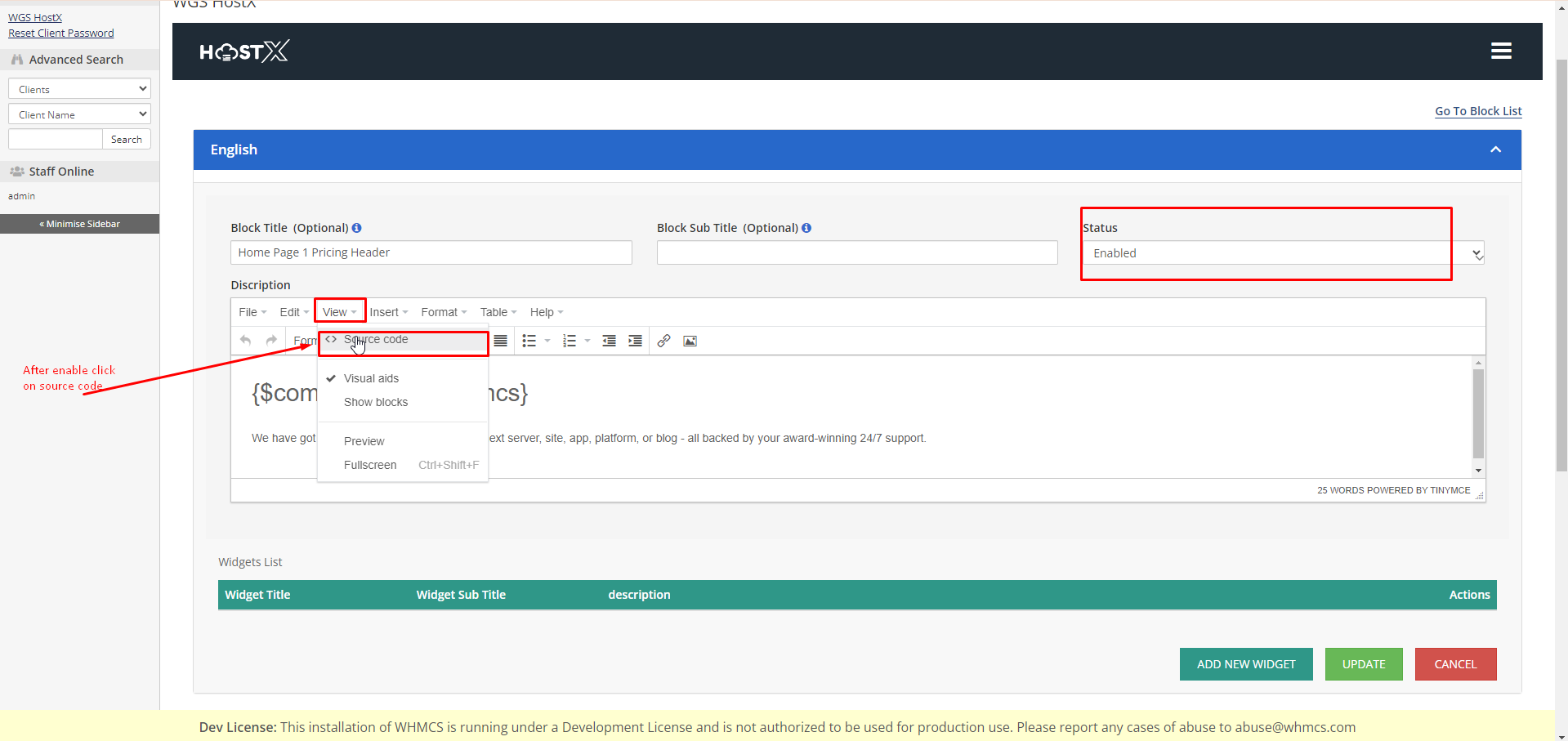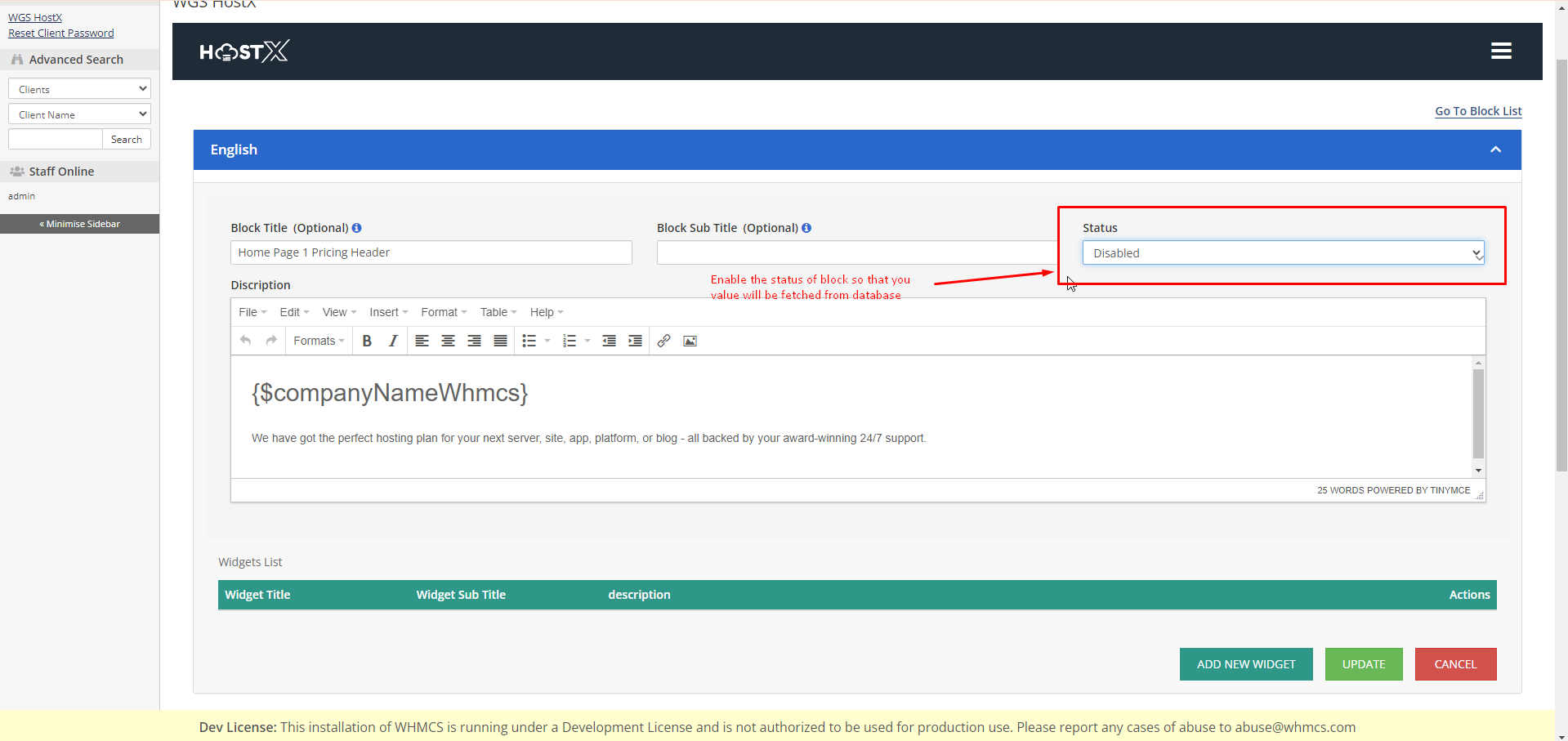 step 5:- Then enable the status of the block so that value will fetched from database.
