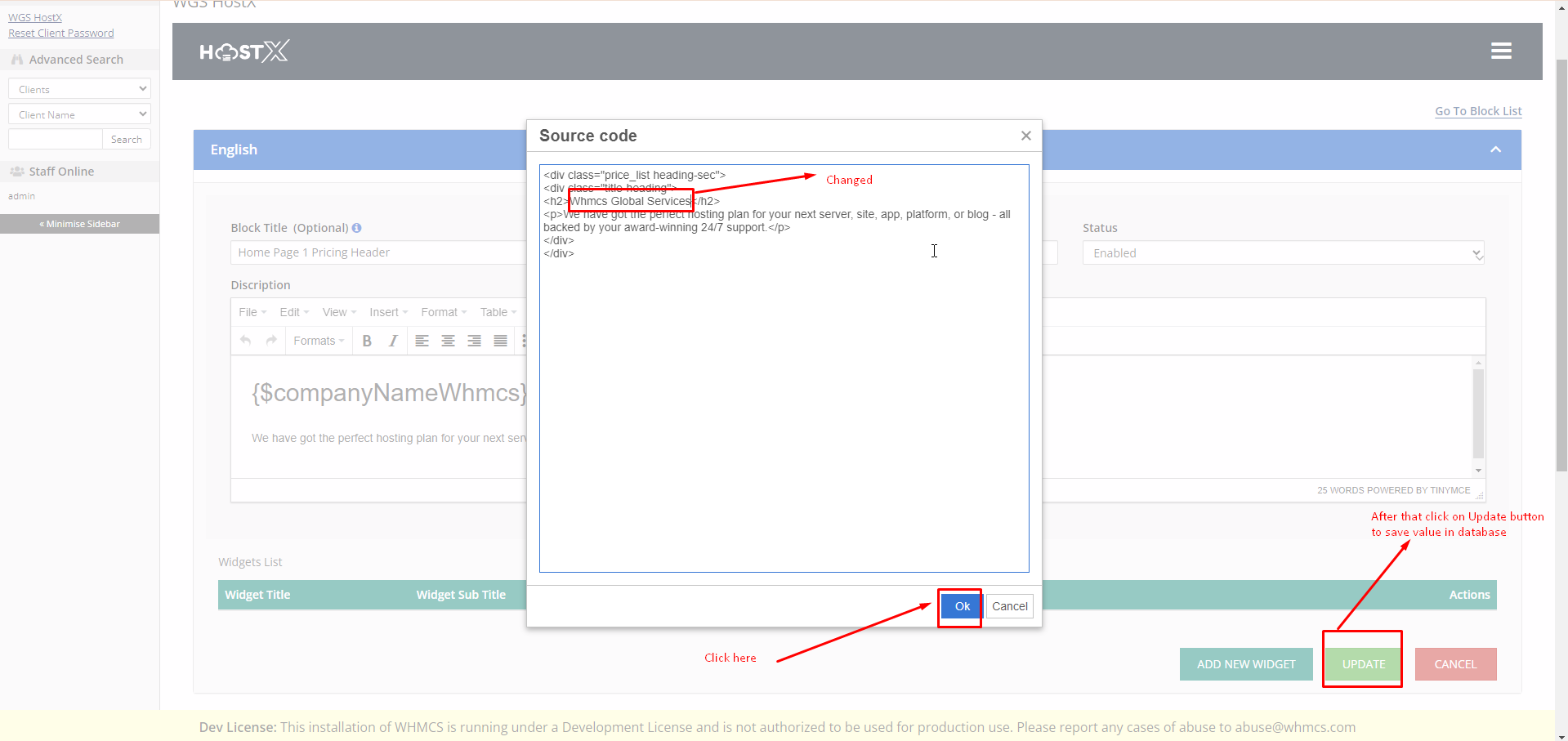 Step 8:- After changing click on the OK button the click on the Update button to save the value in the database.