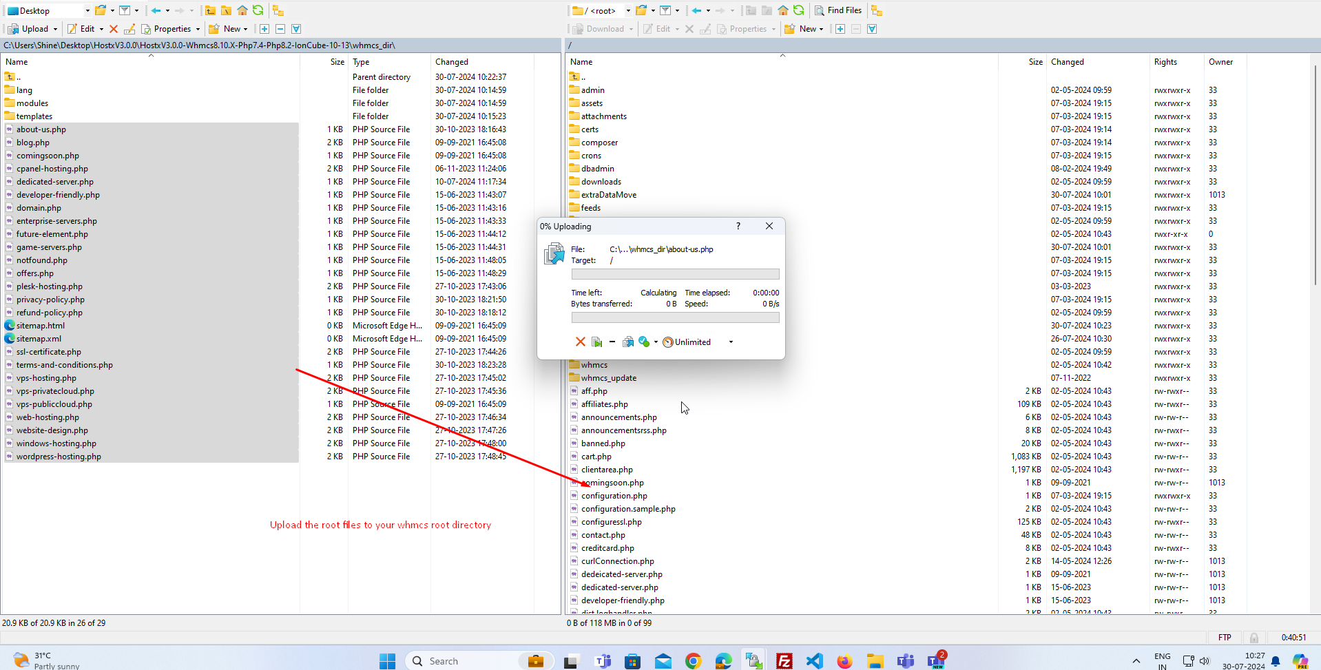 Step :- 10 Now upload the root files to whmcs root directery as given in the screenshot.