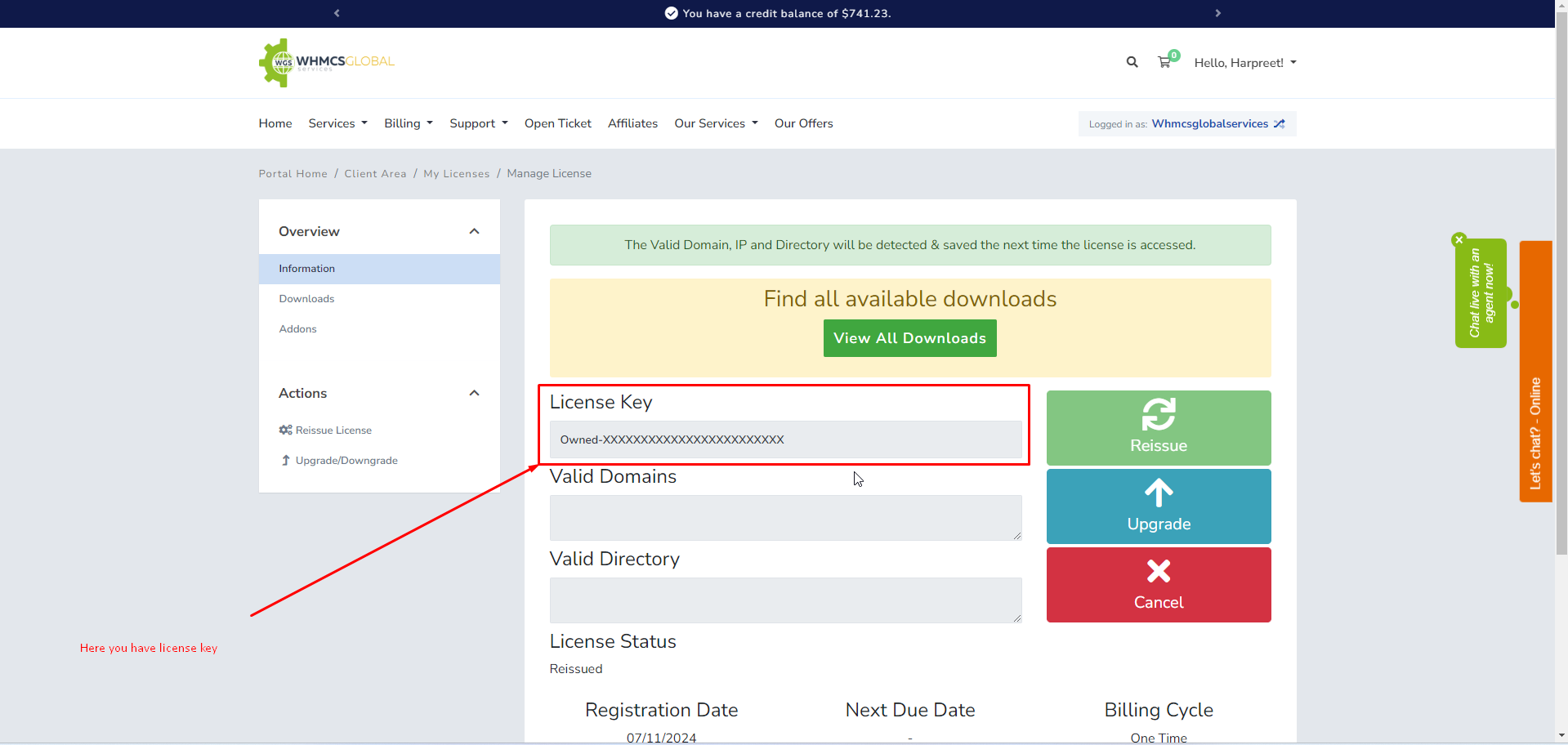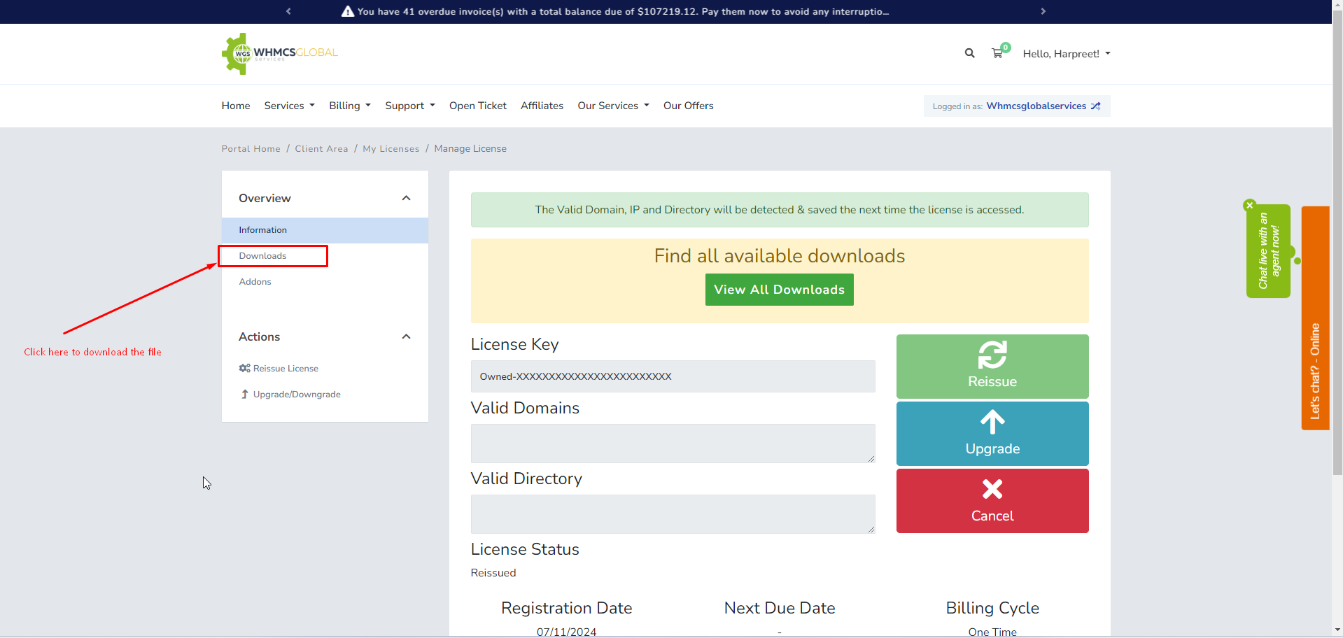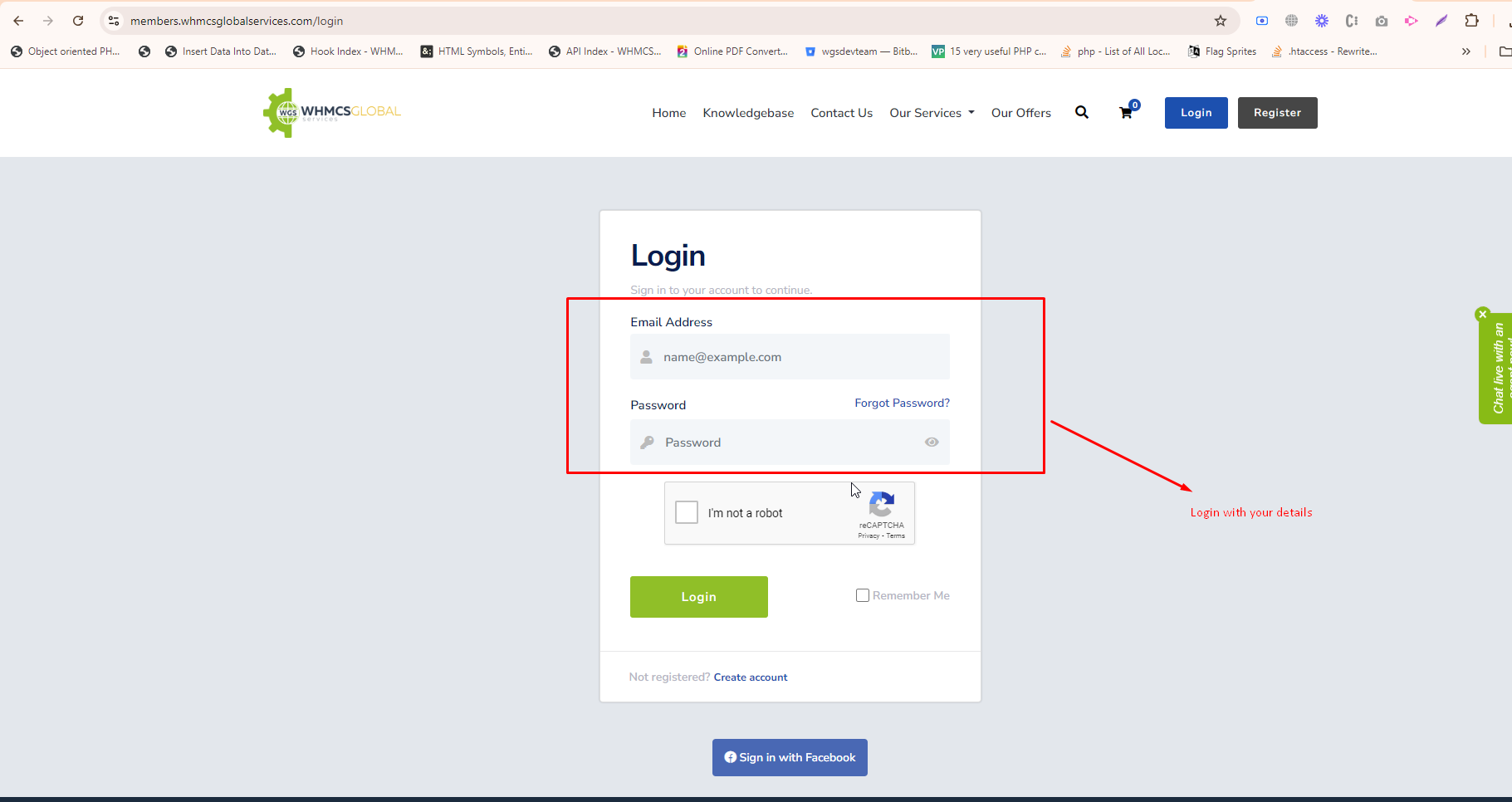 step: - 1. Login to portal https://members.whmcsglobalservices.com/