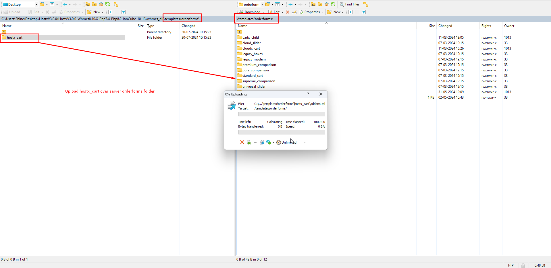 Step:- 15 Now upload hostx_cart over server orderforms folder.