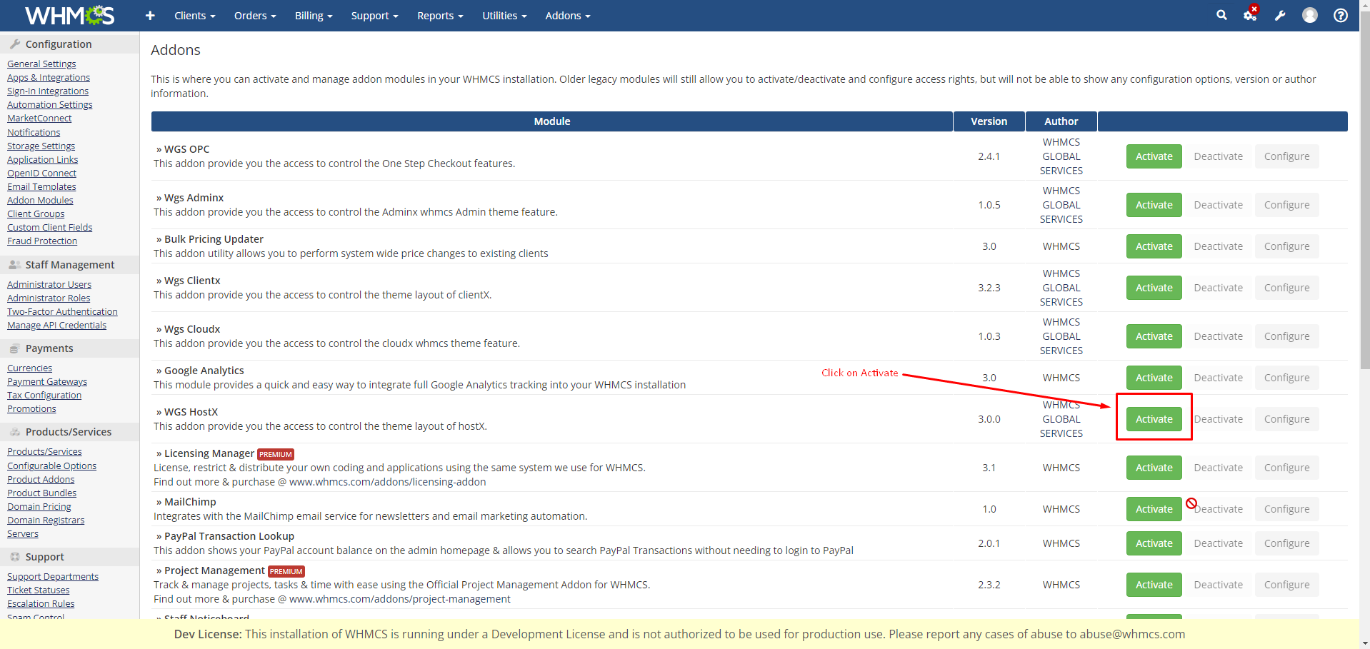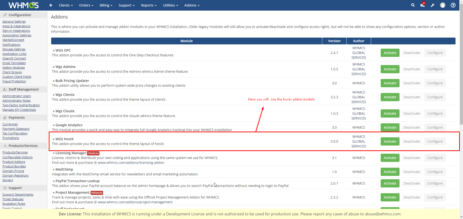 step:- 32 Now Template is activated lets activate the Hostx Cart.