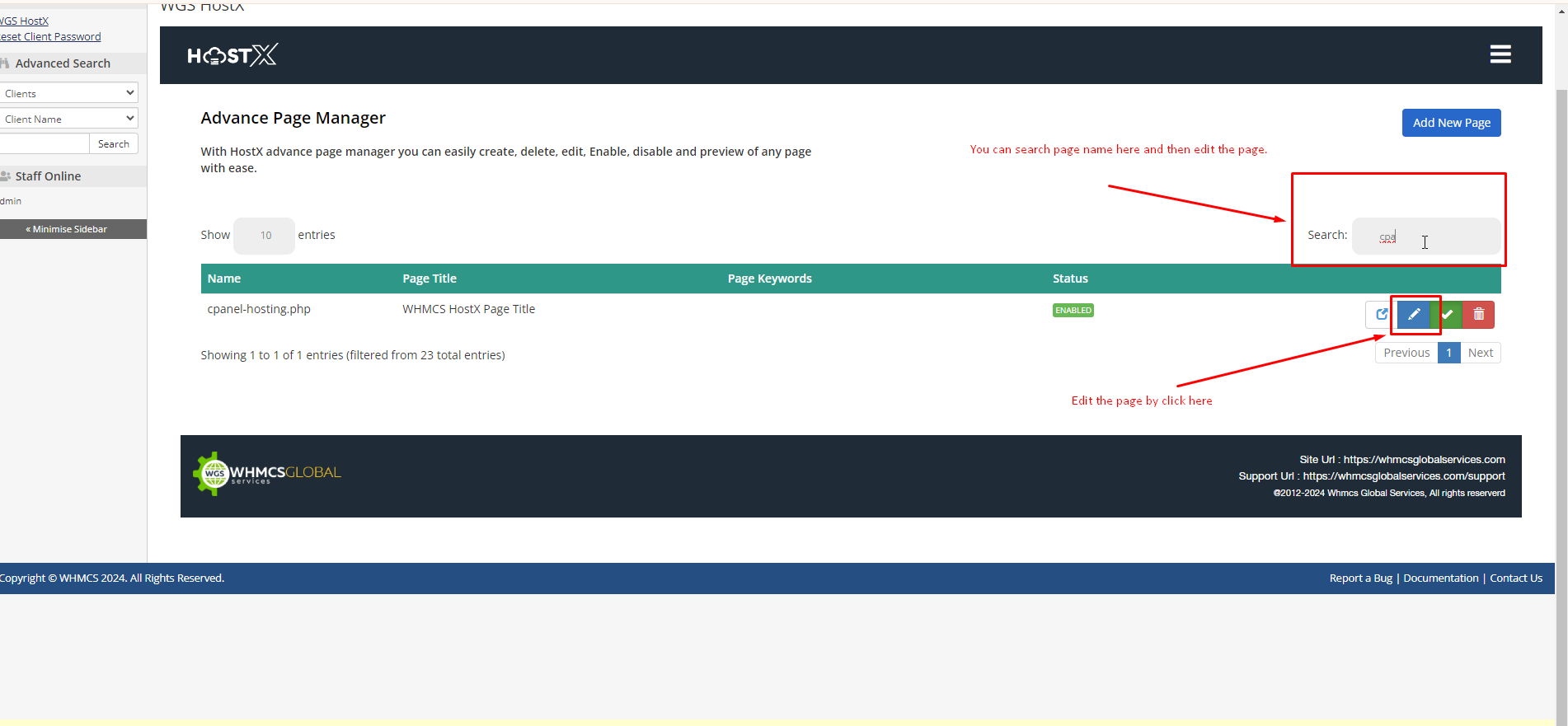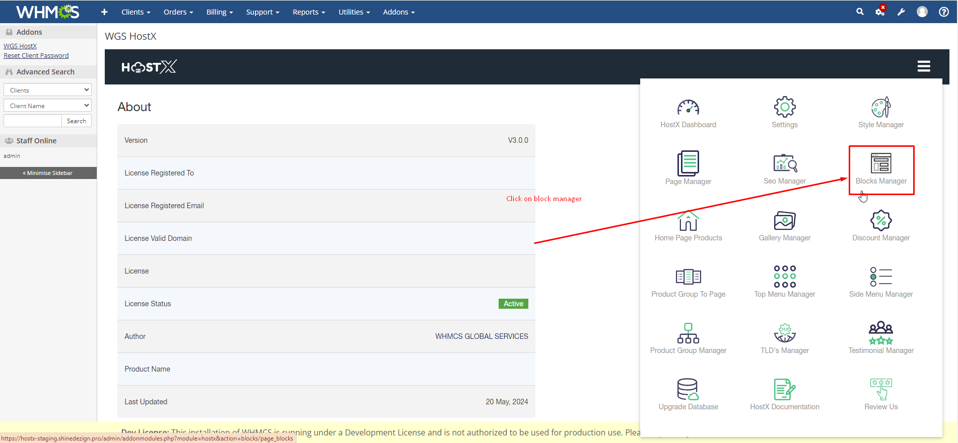 6. Now go to the Page Manager menu and select the page where you want to assign the block.