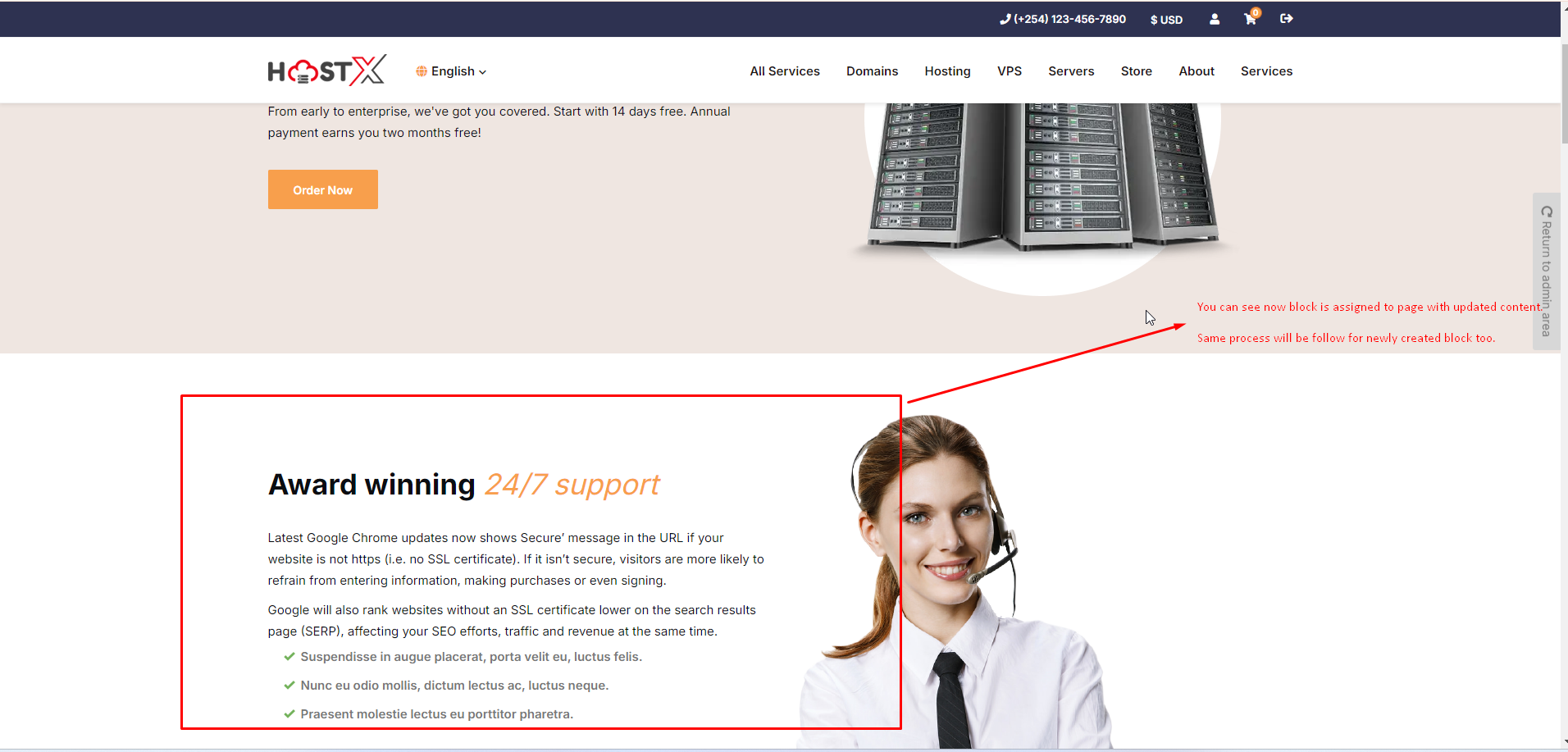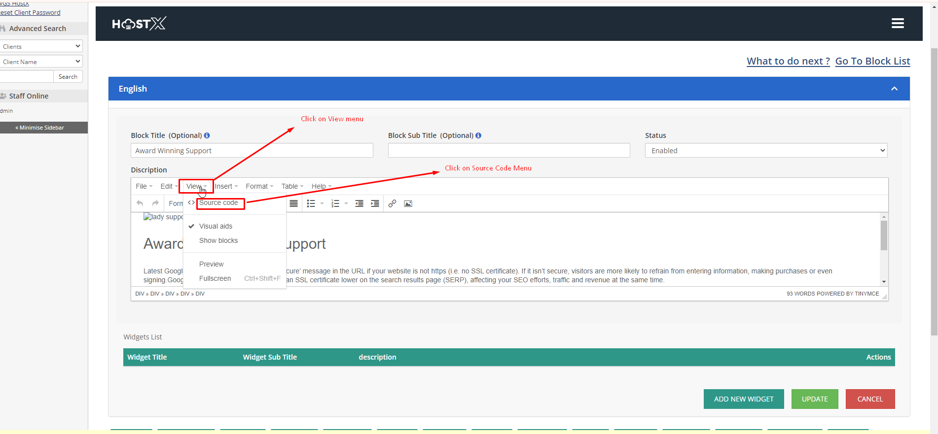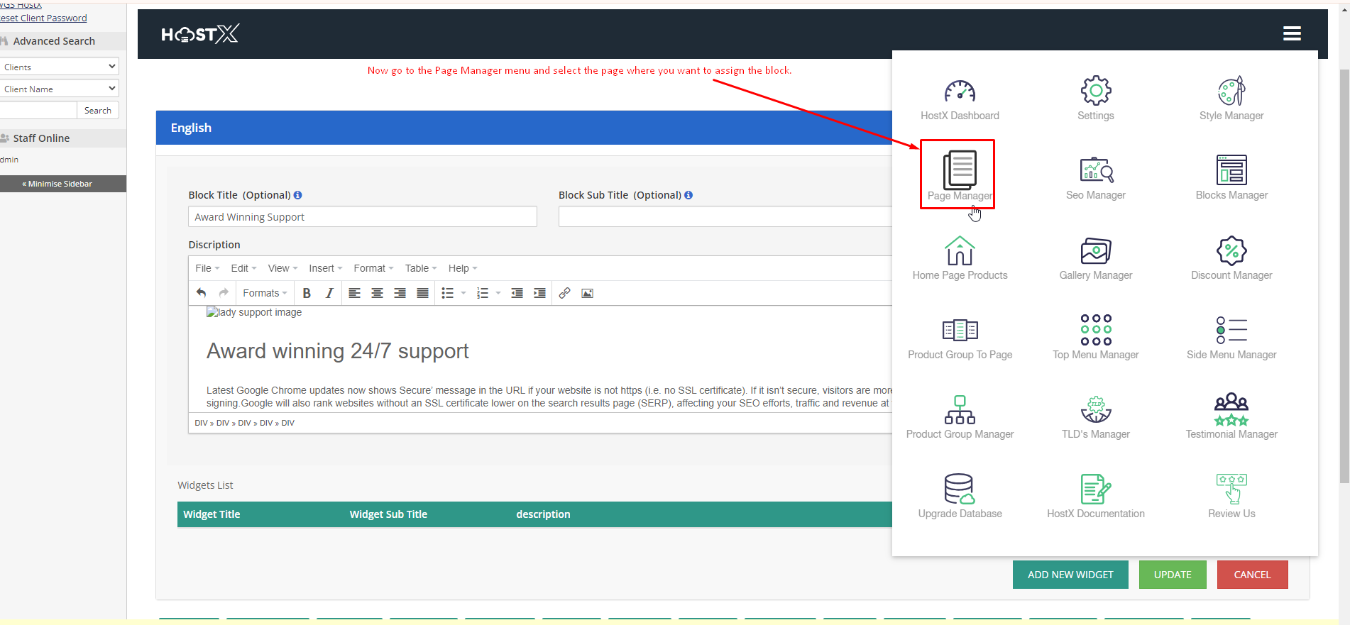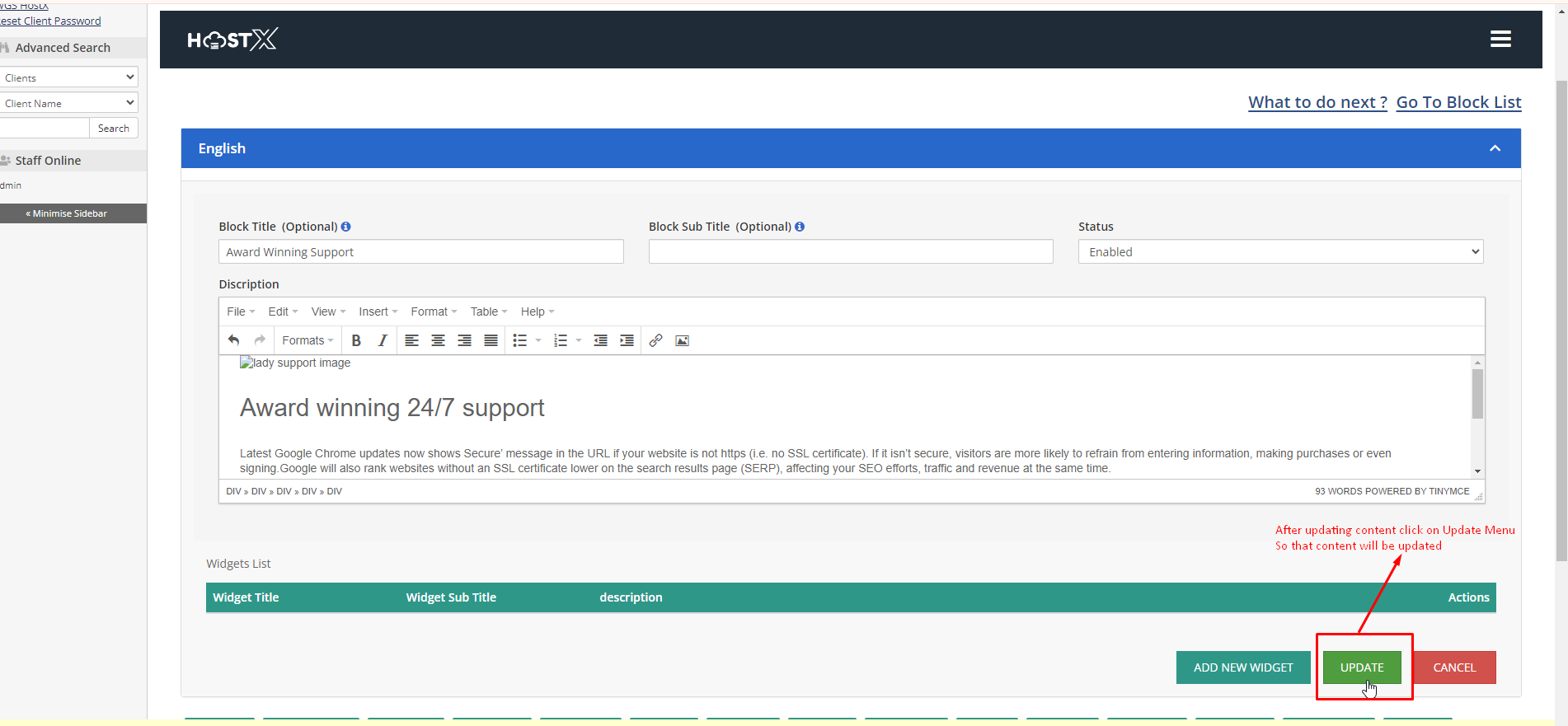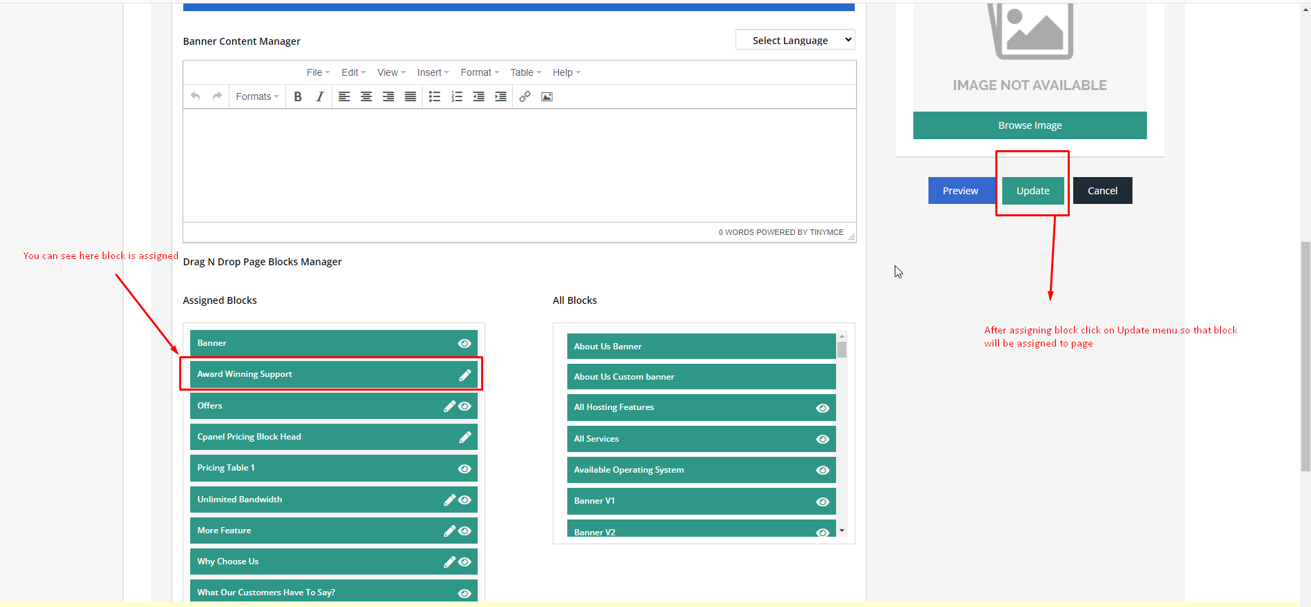 9. After assigning block click on Update menu so that block will be assigned to page.