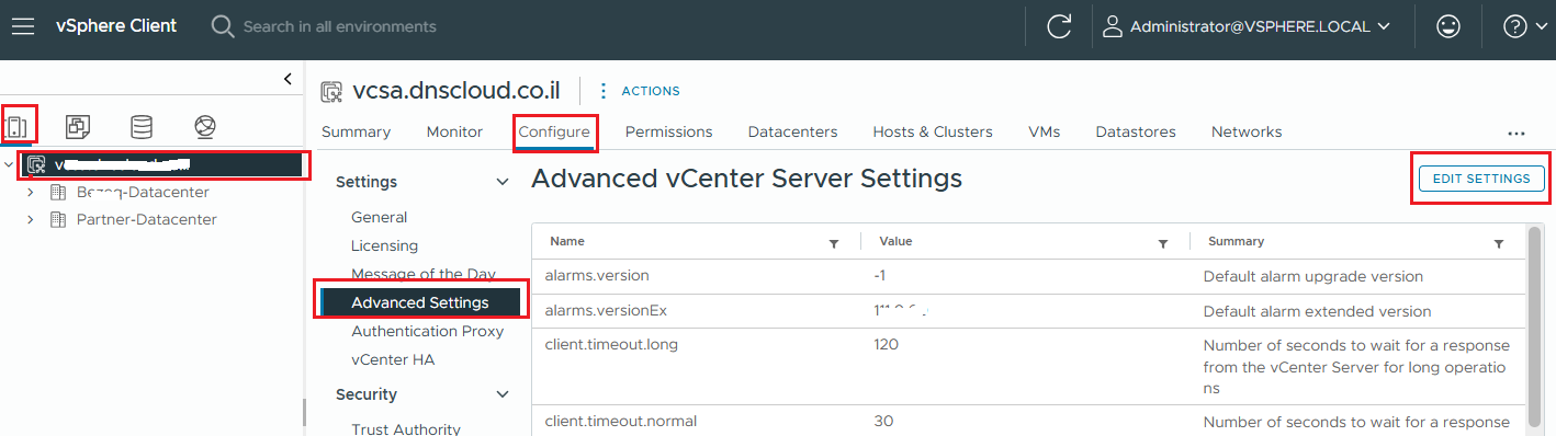 - The Edit Advanced vCenter Server Settings dialog box opens.