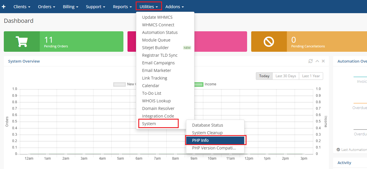 - Find PHP version and Ioncube version installed on your WHMCS server.