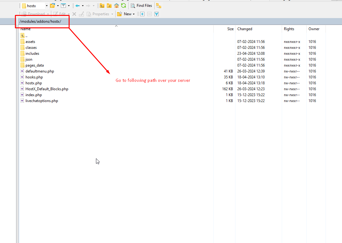 Step 3:- Got to the following path in the server modules/addons/hostx/