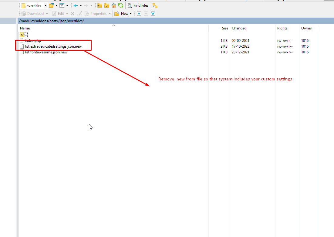 Step 6:- Now remove .new after then the file name will be list.extradedicatedsetting.json .