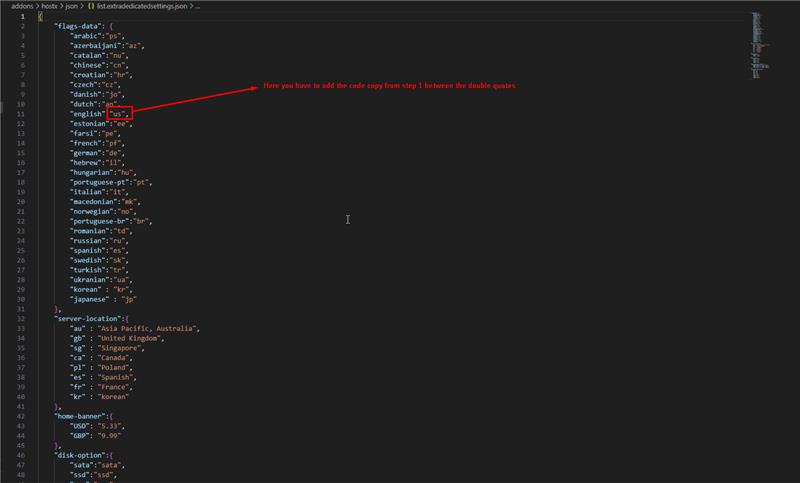 Step 1:-We have highlighted the lang codes with country flags, you just need to copy the flag code and paste it in the front of the language for which you need to change the icon.