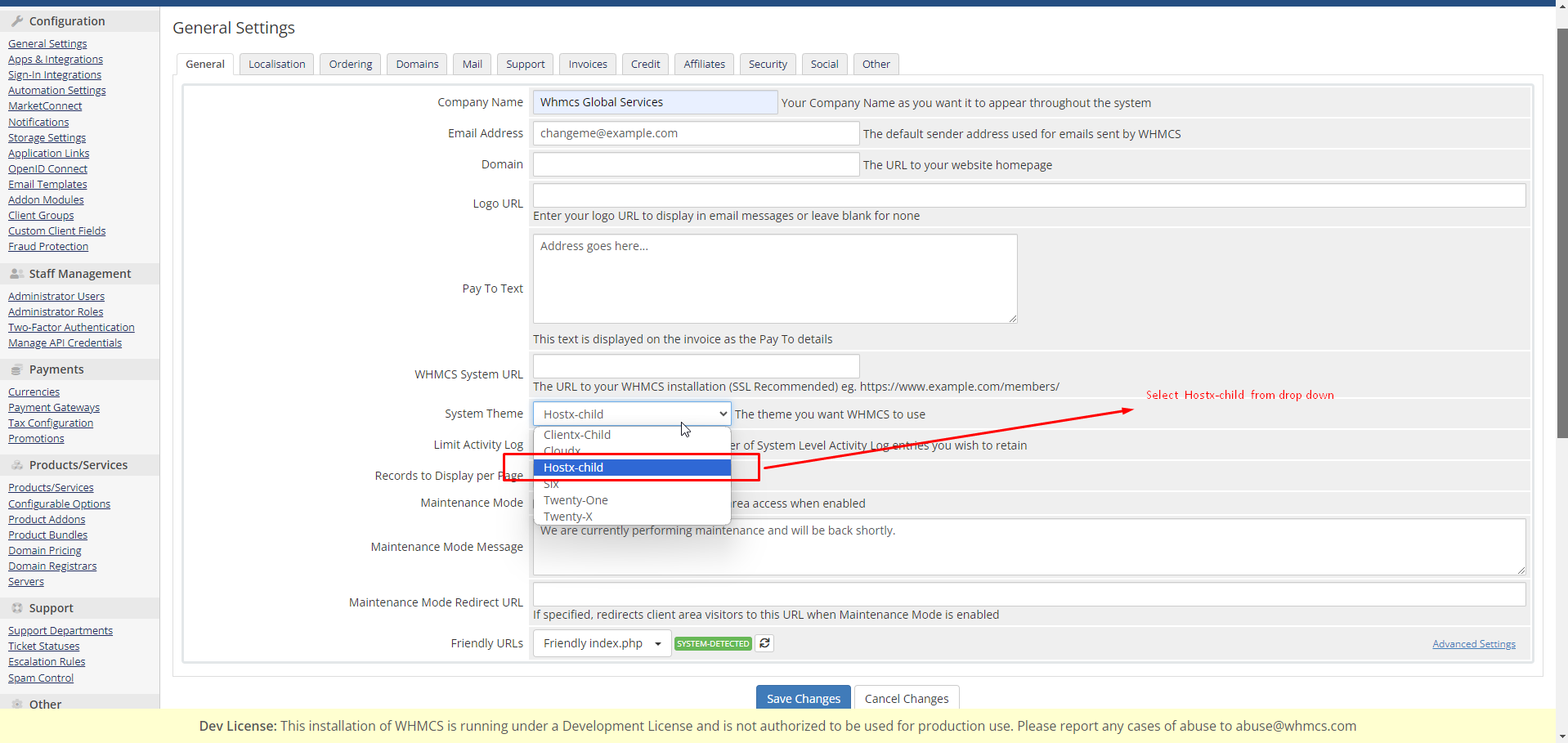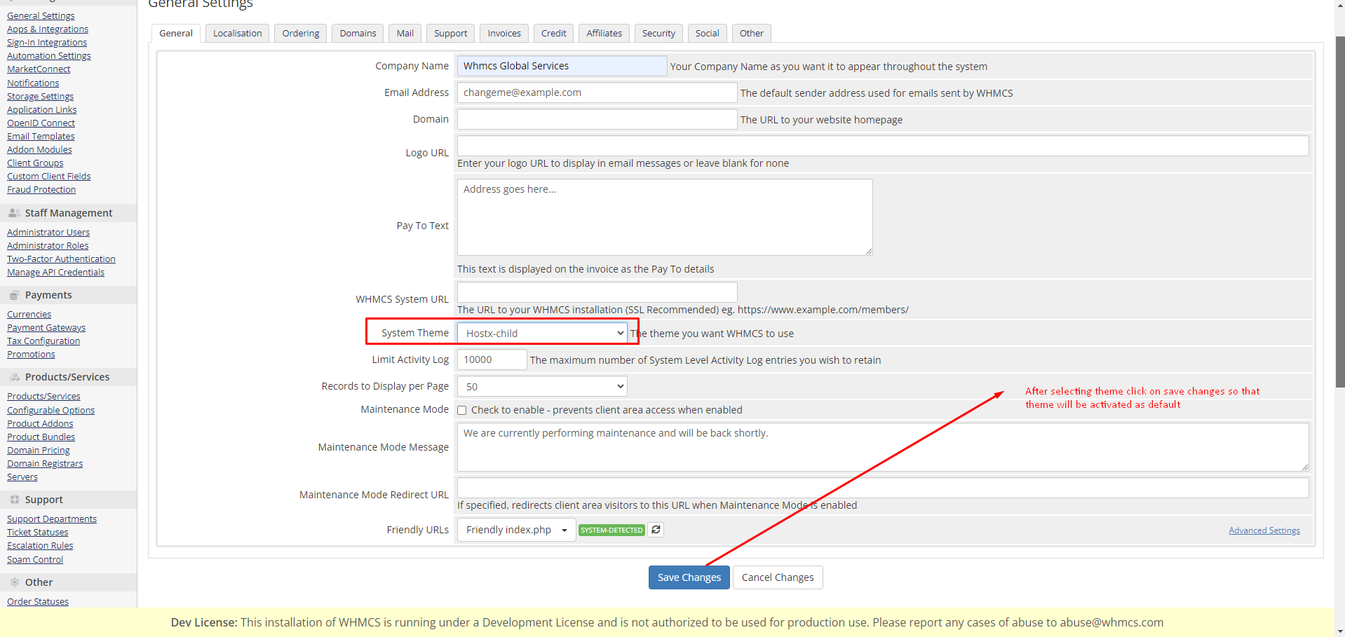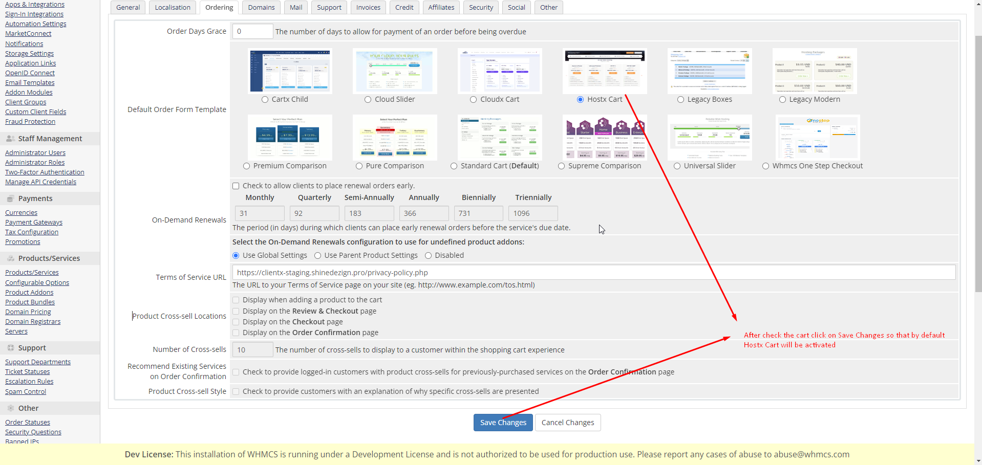 step :- 3 After check the cart click on Save Changes so that by default Hostx Cart will be activated.