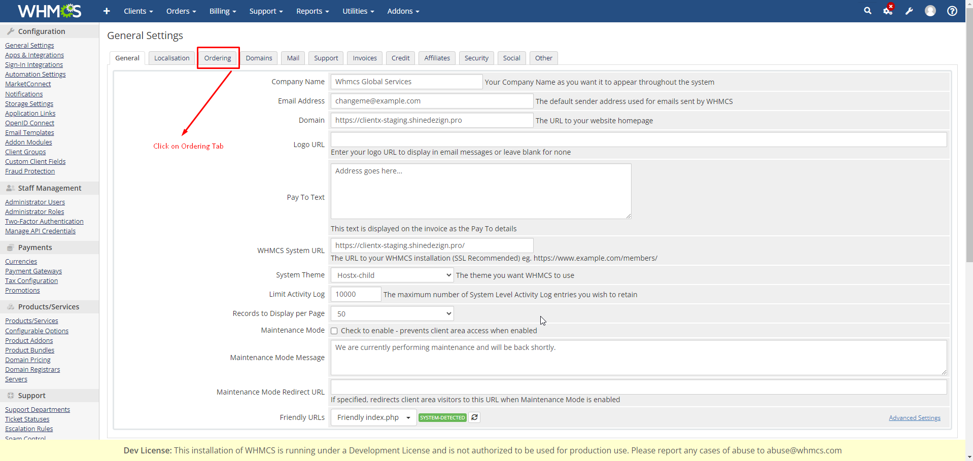 step:- 1.Click on the ordering tab.