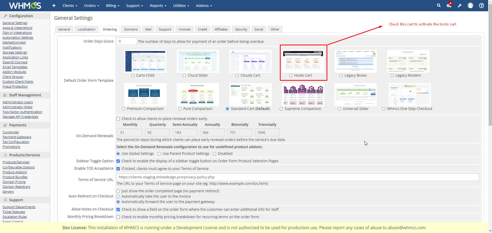 Now Template is activated lets activate the Hostx Cart.