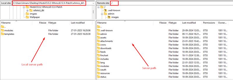 Step 3: Now navigate to the path shown below in the screenshot on both local (extracted file root path ) and server (whmcs root path).