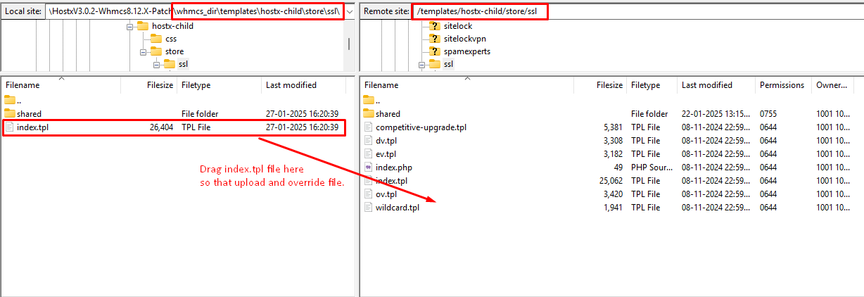 Step 9. Now navigate to the path shown below in the screenshot to upload the “index.tpl” patch files from the directory “ssl”.