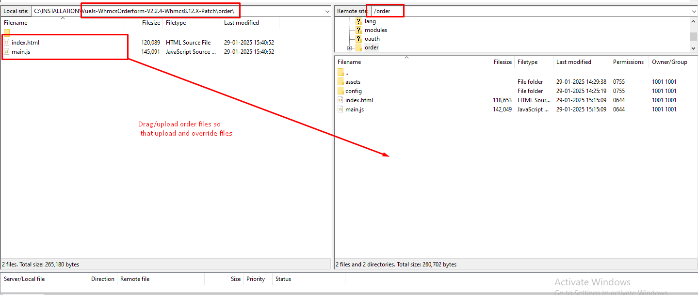 Step 4: After extracting the Patch go to the path as shown in the screenshot (\order\ -> In local ) and (/order-> In server ) to upload the “order” files.