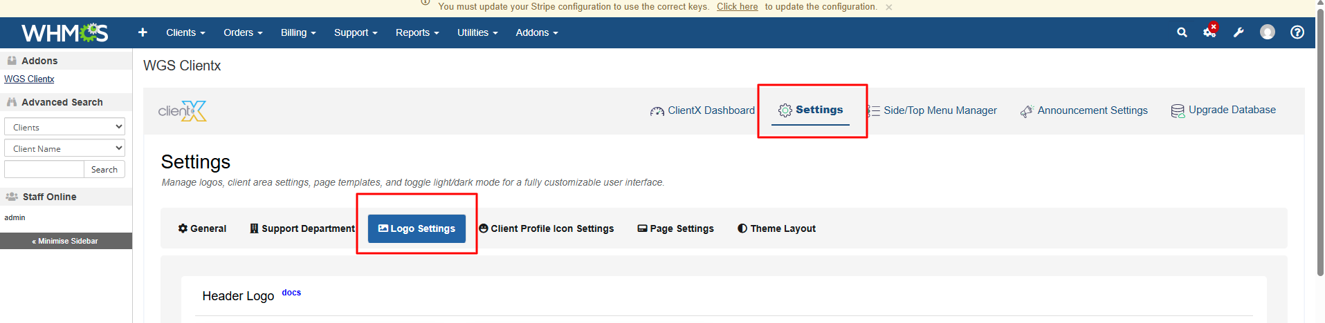 WGS ClientX – Client Area & Logo Settings Guide