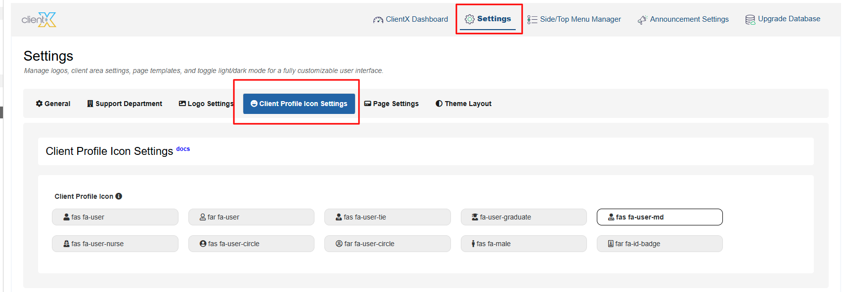 WGS ClientX – Client Area & Client Profile Icon Settings Guide