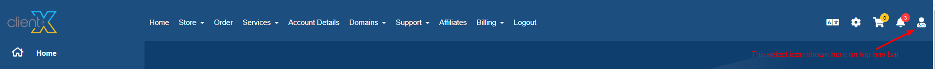 Once the changes are saved, the selected profile icon will appear in the Client Area top navigation bar, as shown in the attached screenshot below.