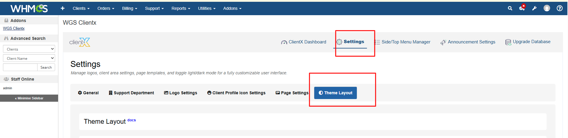 WGS ClientX – Client Area & Theme Layout Settings Guide