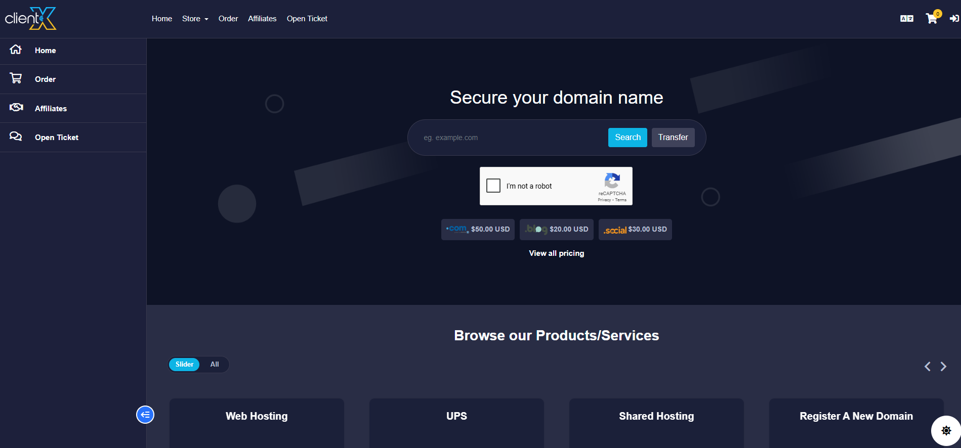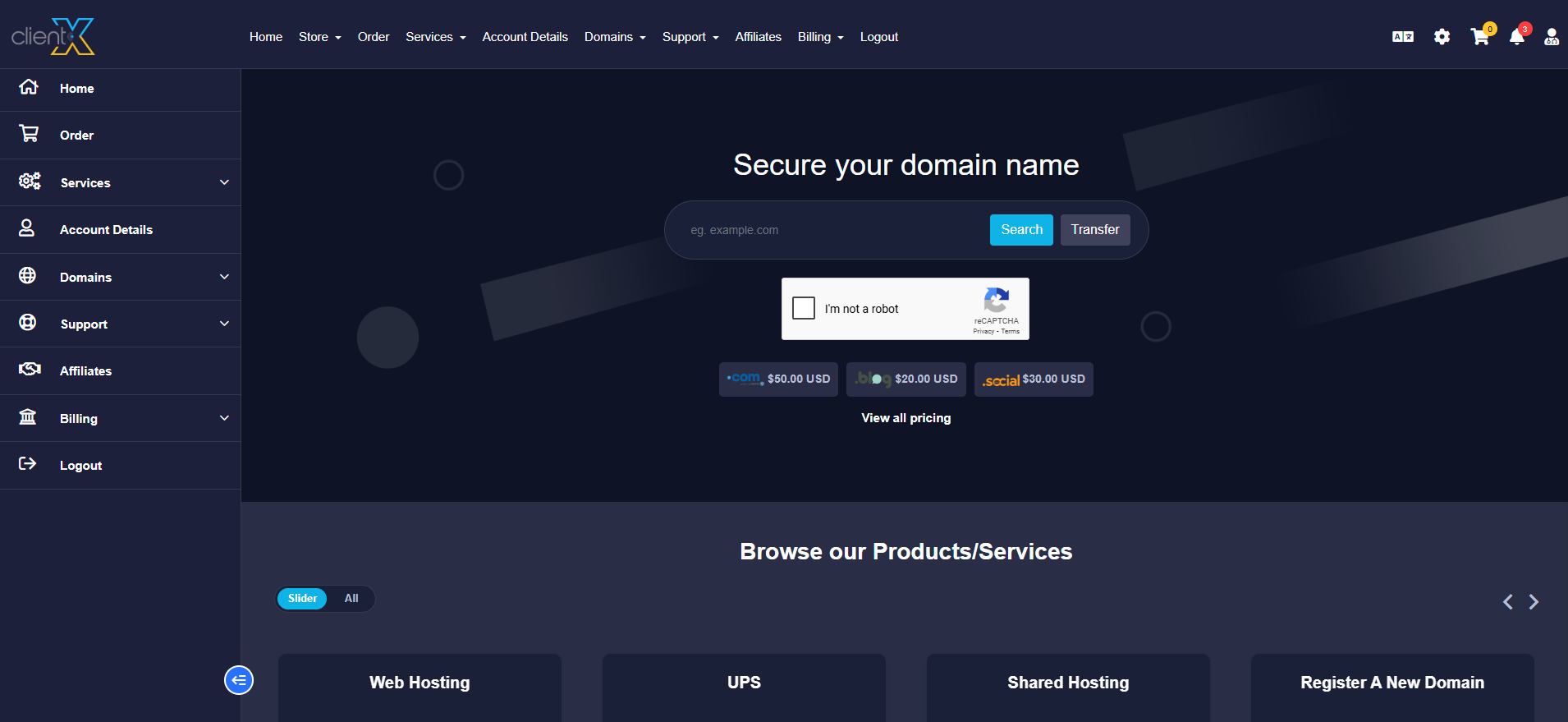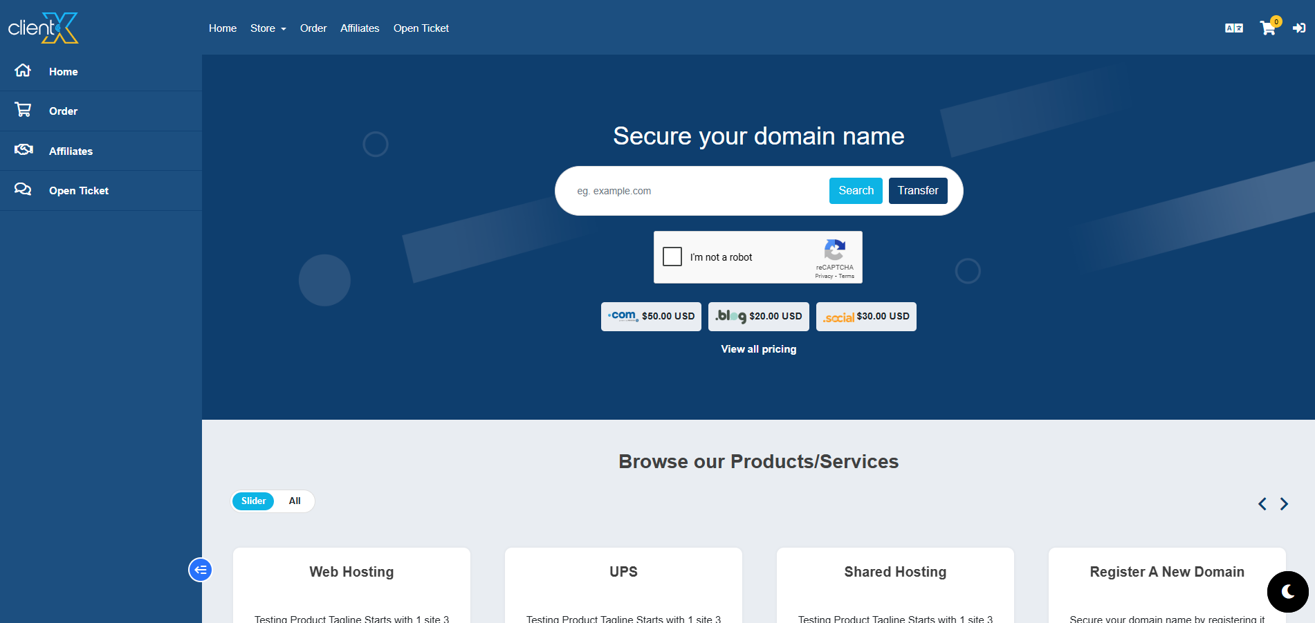 When Dark Mode is selected, the dark theme will be applied across the entire Client Area. The interface will appear in a modern, dark-style layout, as shown in the attached screenshot below.