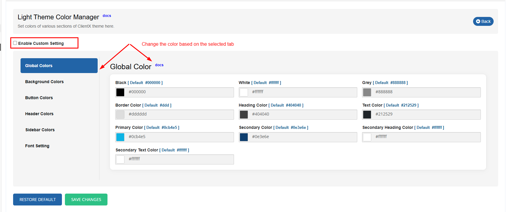 You will see the option Enable Custom Settings (Theme Color Manager).