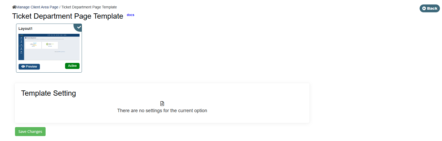 On the Ticket Department Page Template screen, the following layout option is available: