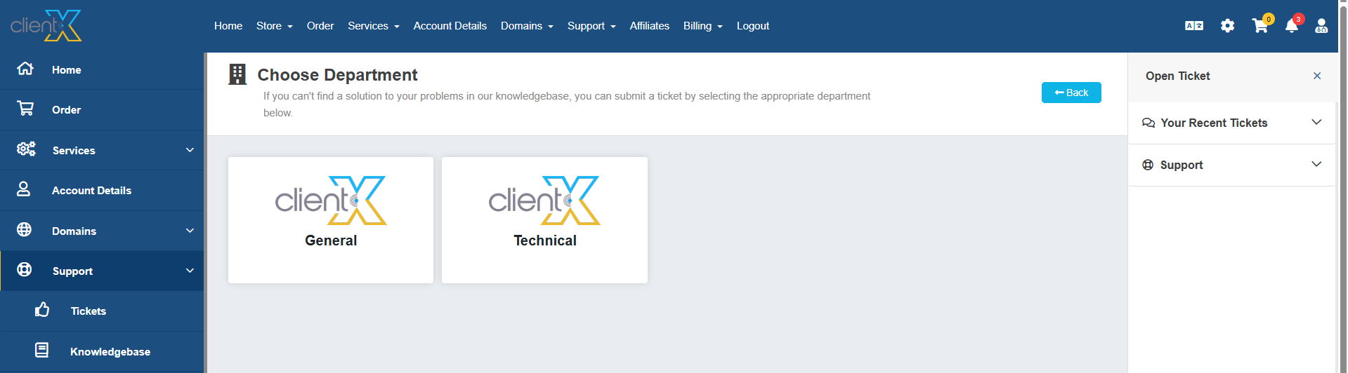 WGS ClientX – Client Area & Ticket Department Guide