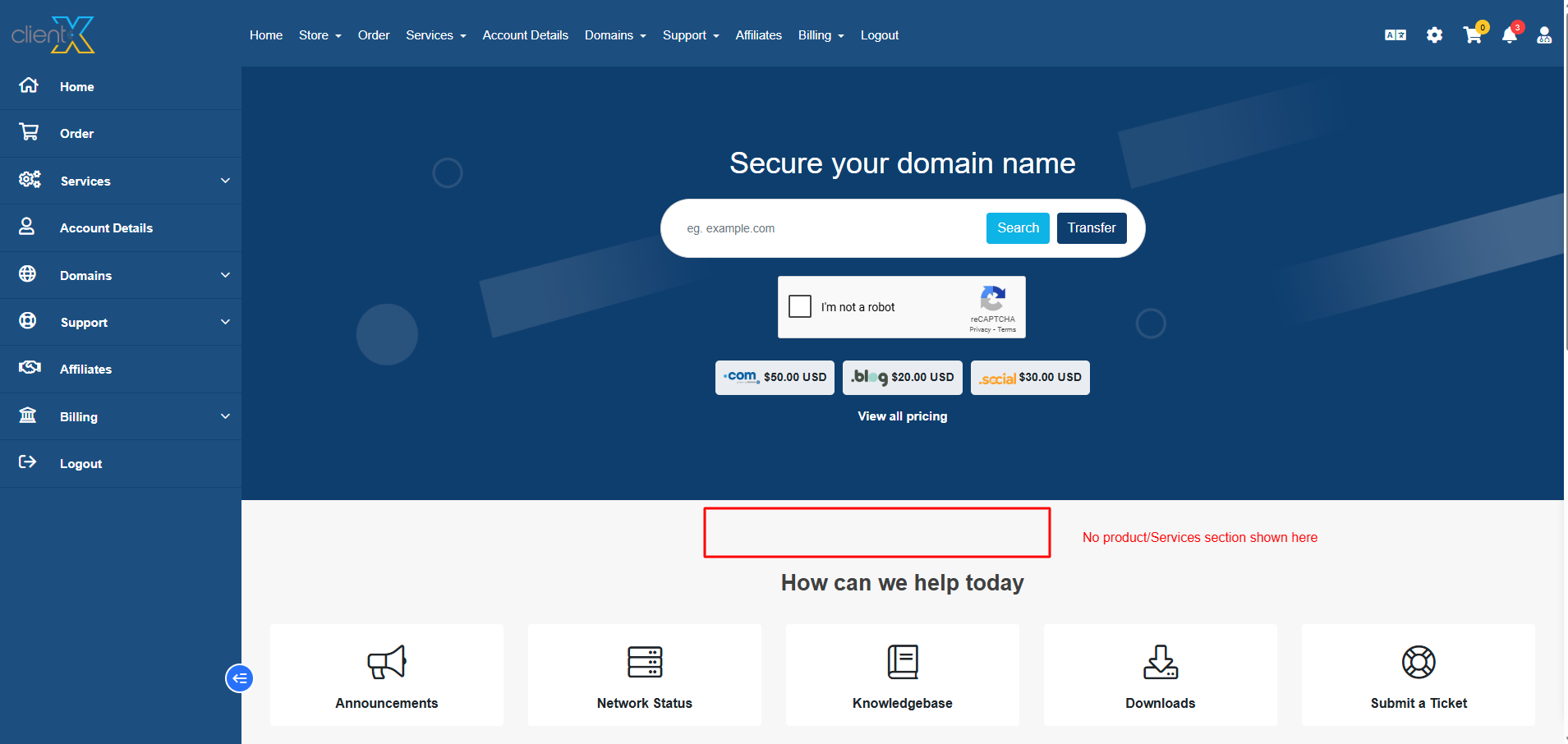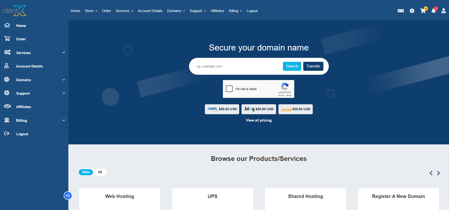 WGS ClientX – Client Area & Home Settings Guide