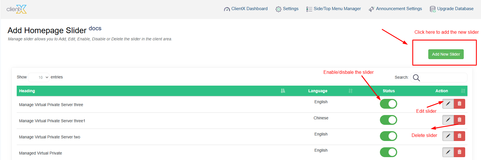 Step 5: Edit Existing Slider