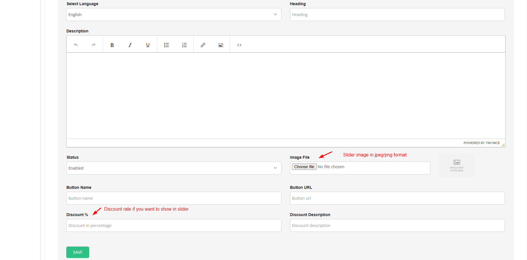 Modify the slider details as required