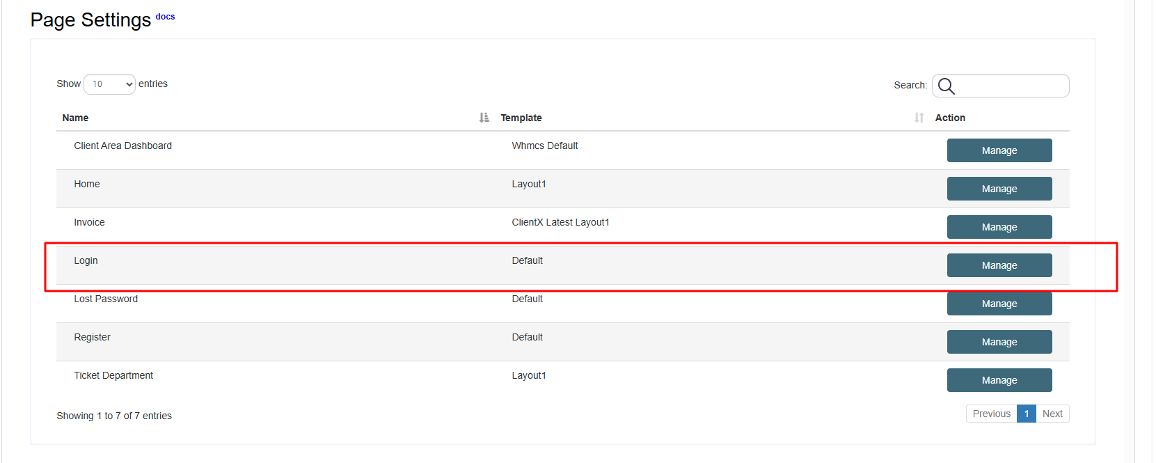 Under the Page Settings tab, locate the Login section.