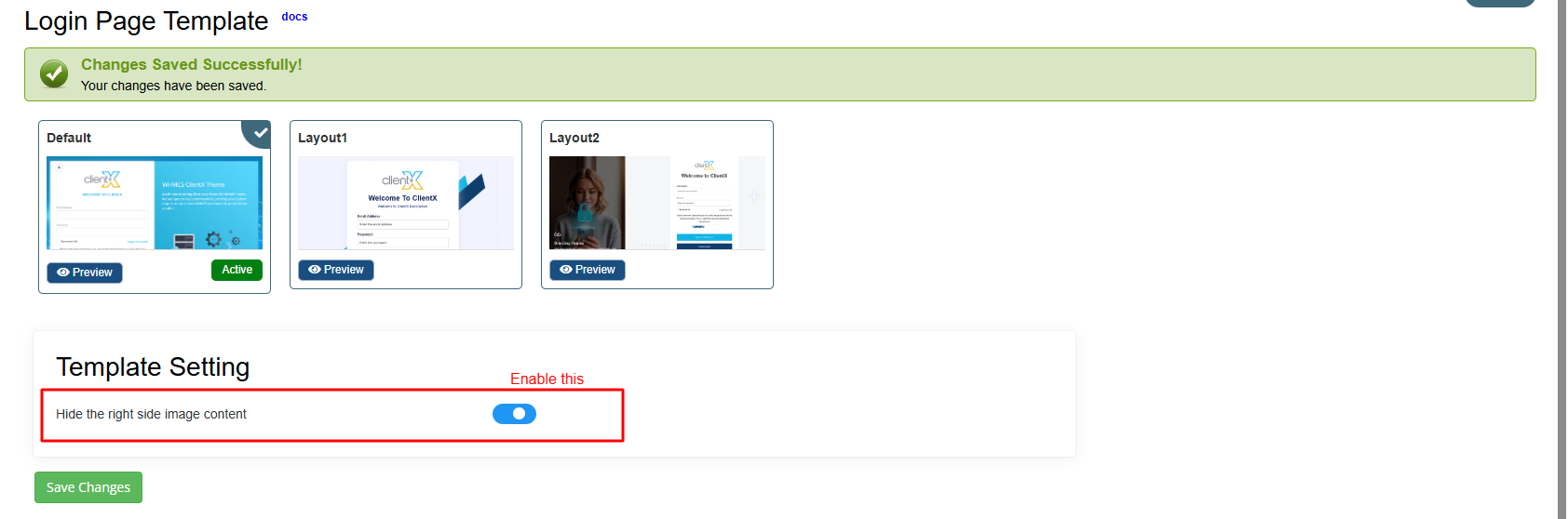 Select your preferred layout and click Save Changes to apply it.