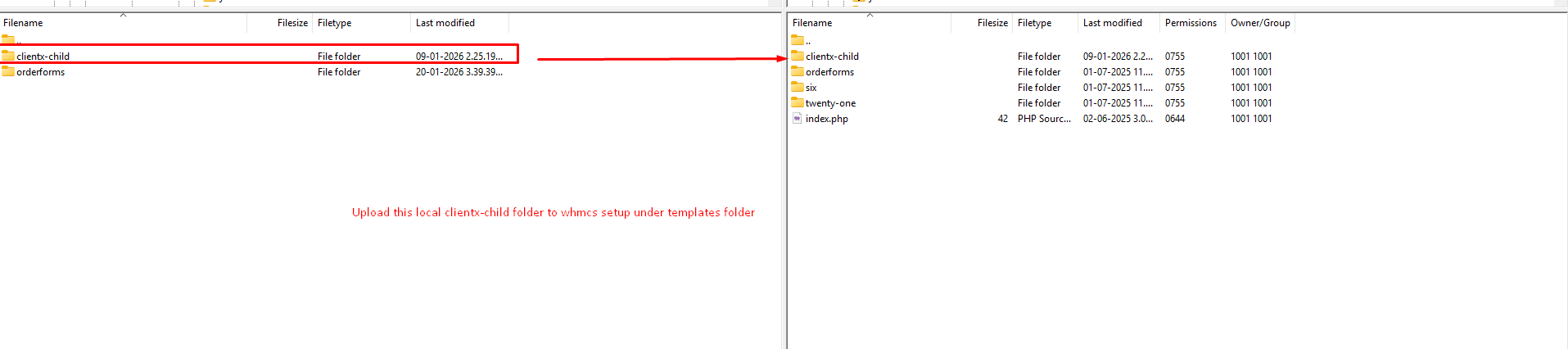 Step 10: Upload clientx-child folder to your WHMCS setup (whmcs_root/templates/).