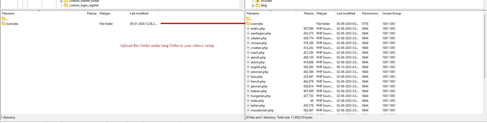 Step 16 : Upload overrides folder under WHMCS setup langfolder (whmcs_root/lang/).