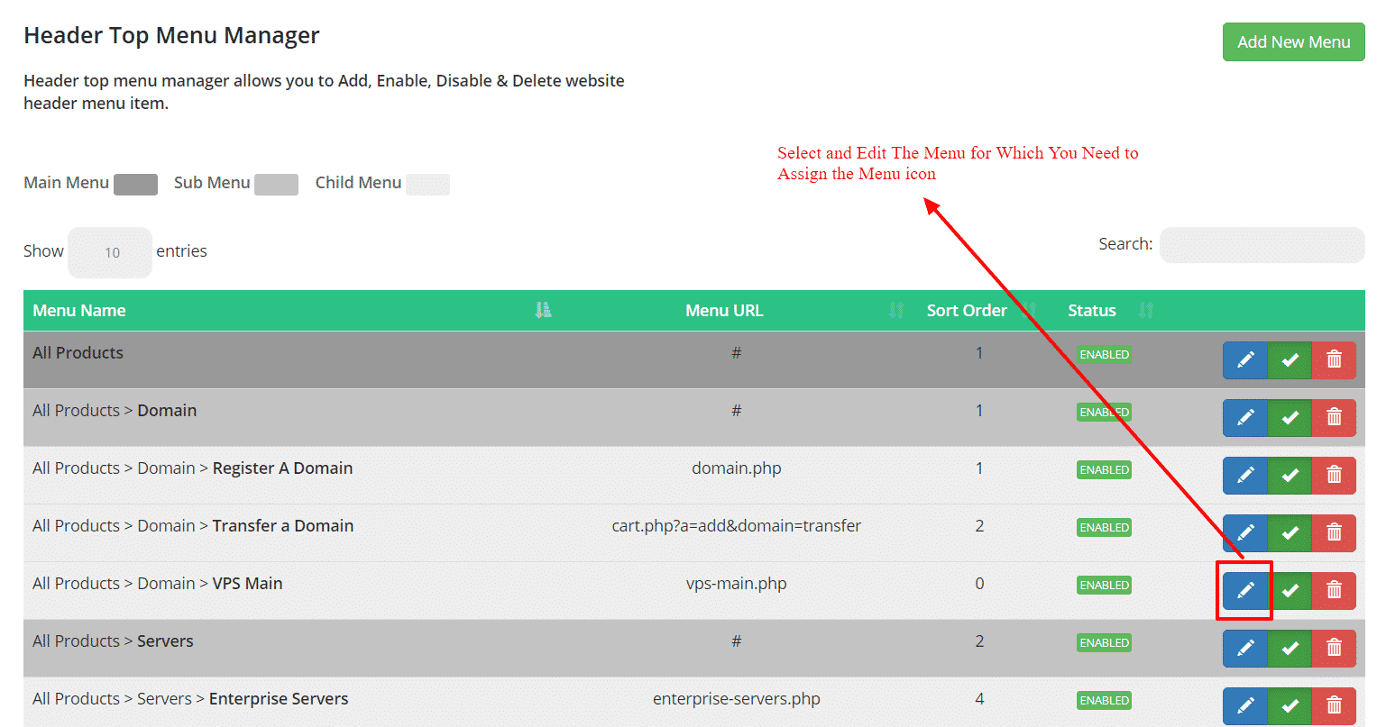 Step 3: Select and Edit The Menu for Which You Need to Assign the Menu icon