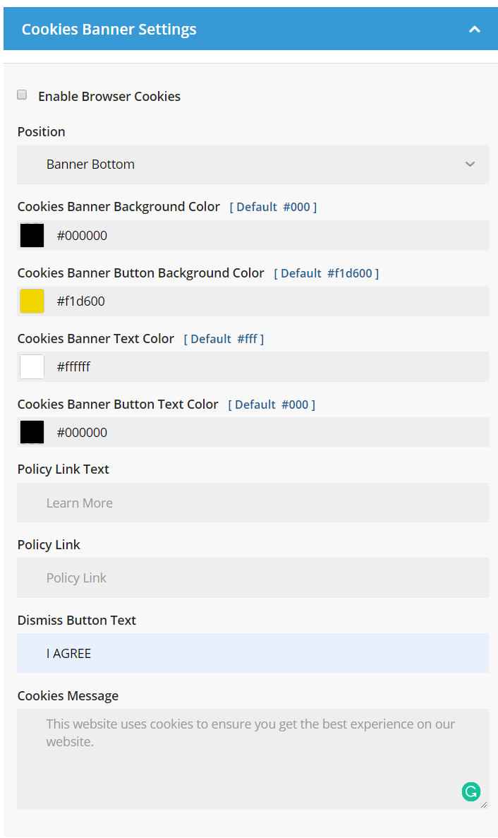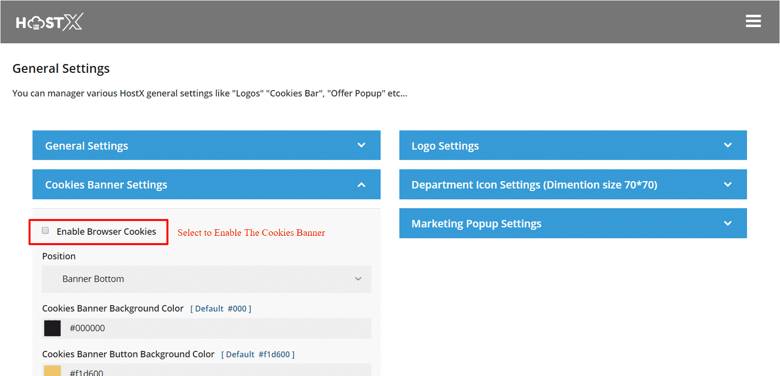 Step 2: Select Enable Cookies Option to Enable the Cookies Banner