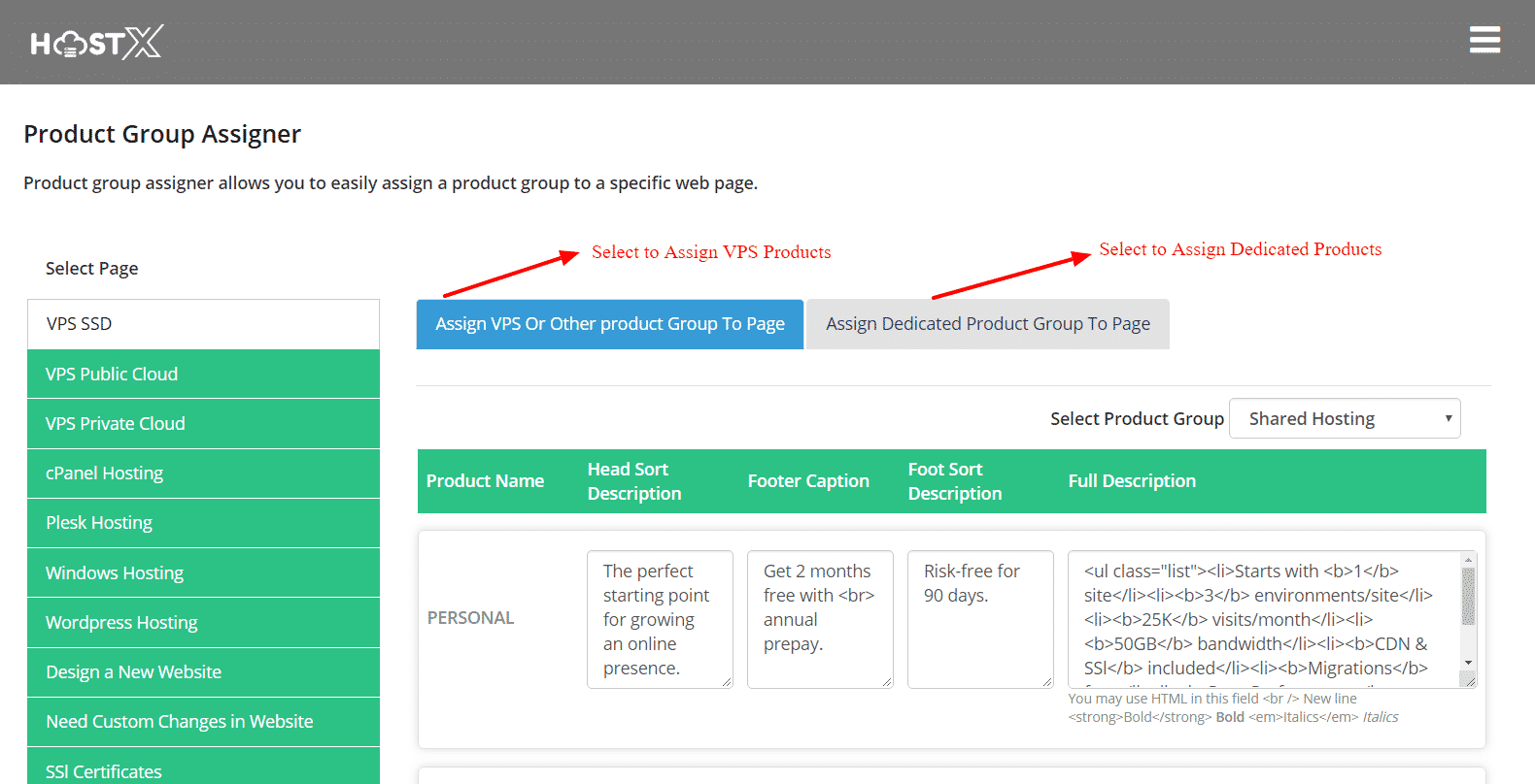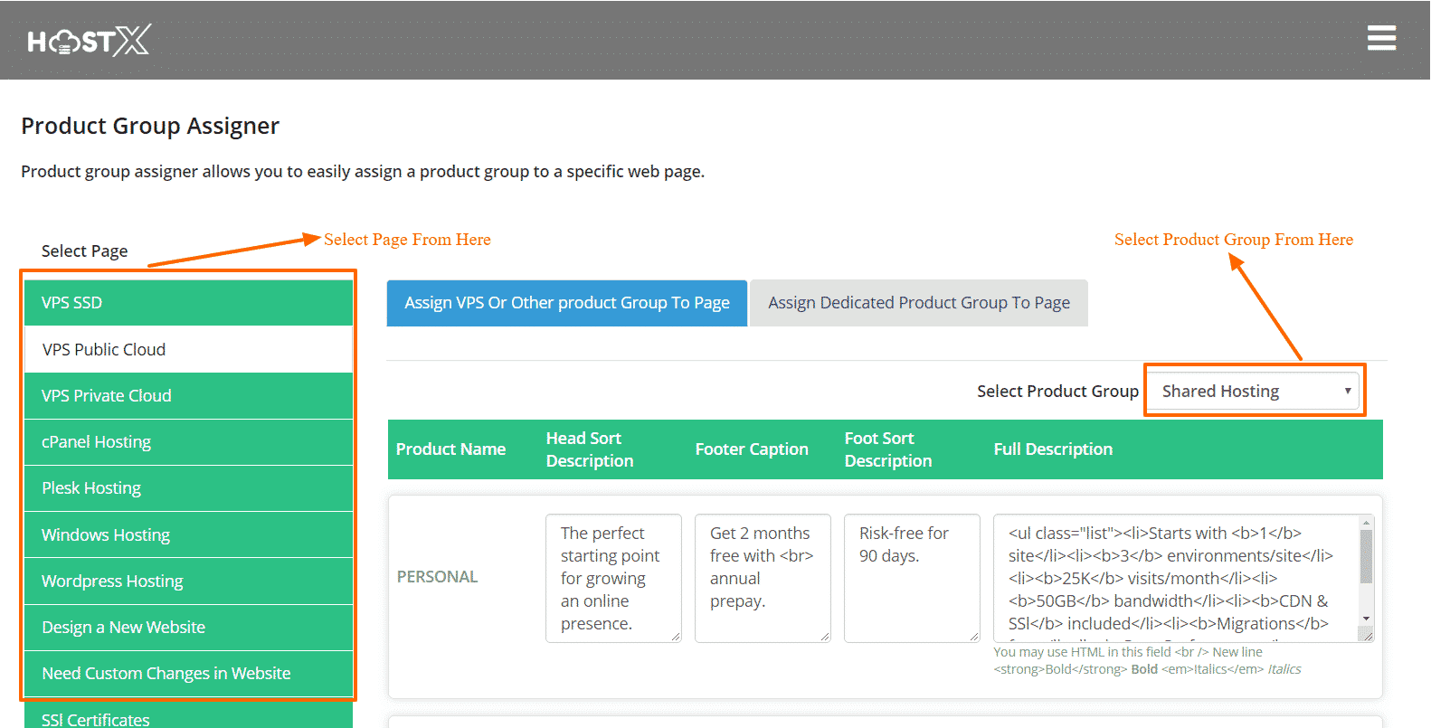 Step 3. Select the Page for which you want to assign the product group from Left Bar, as mentioned in the screenshot below.