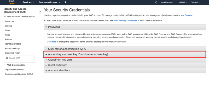 Note: In order to get the API Key and API Secret Key, follow this link https://console.aws.amazon.com/iam/home?#/security_credentials