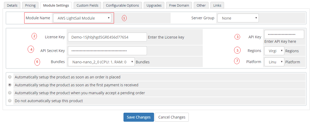Step 5. Under Module Settings, you will get a Dropdown (Module Name). From that dropdown, you need to select the 'AWS LightSail Module'.